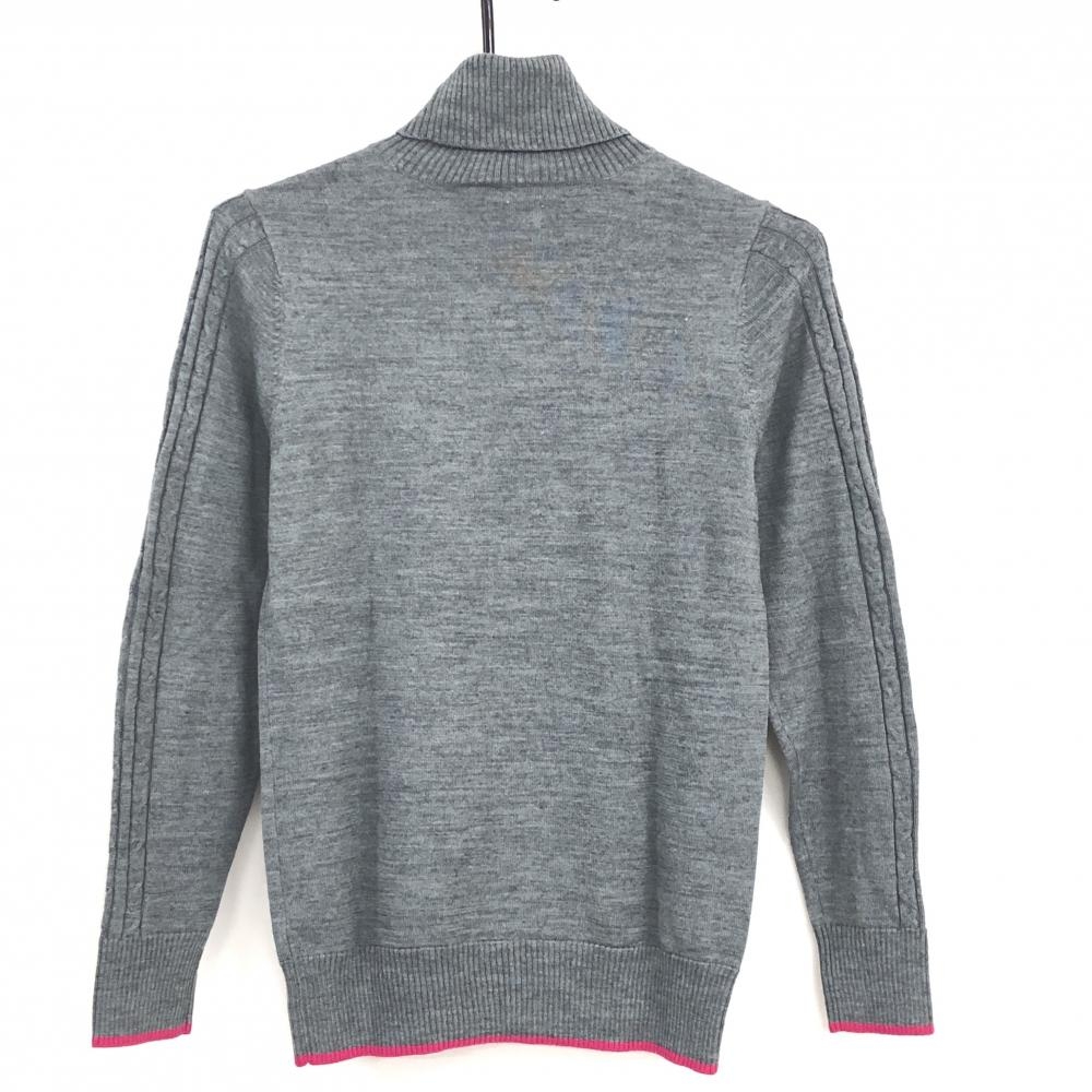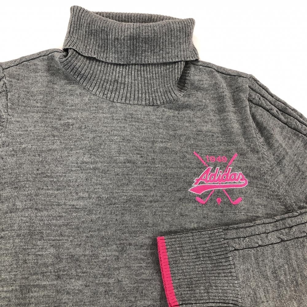 【超美品】アディダス タートルネックセーター グレー ウール混 刺しゅうピンク ニット レディース M/M ゴルフウェア adidas