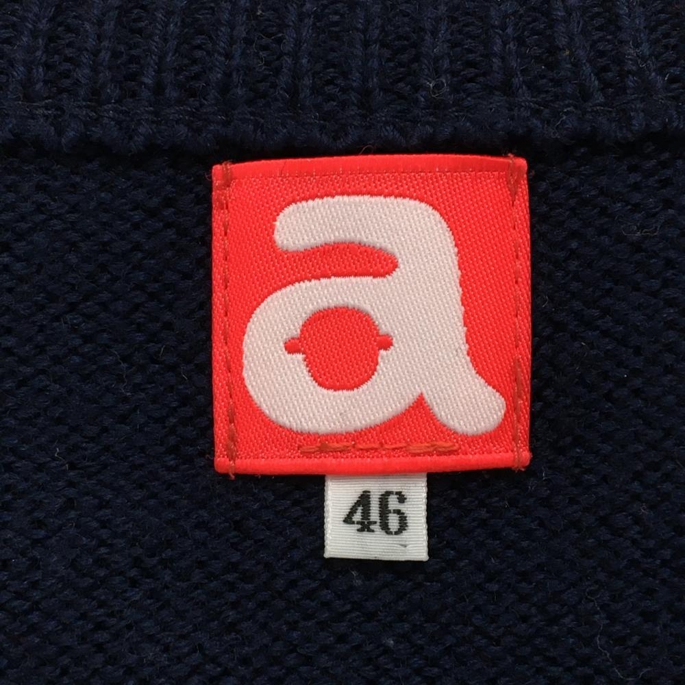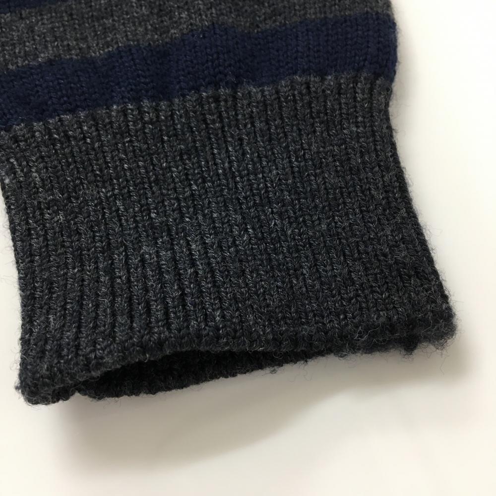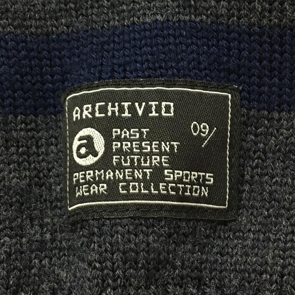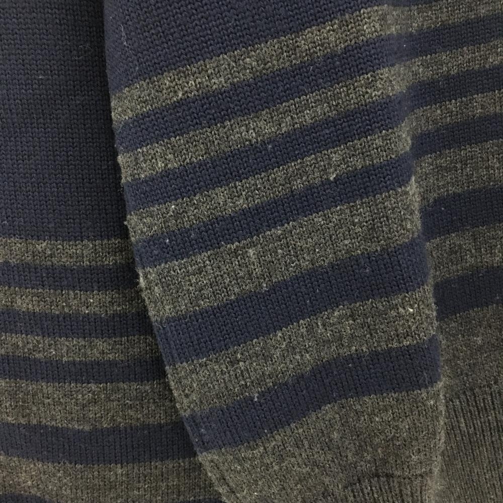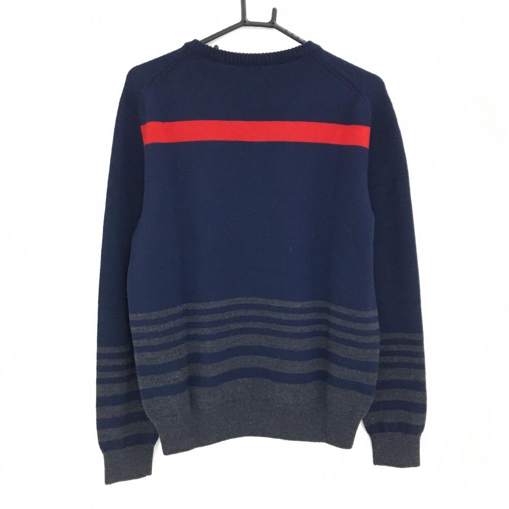 【美品】アルチビオ セーター ネイビー×グレー 一部ボーダー 胸元レッドライン ニット ウール100% メンズ 46(M) ゴルフウェア archivio