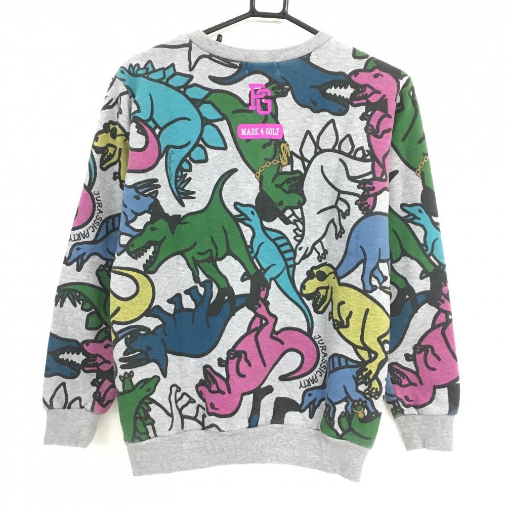 パーリーゲイツ トレーナー グレー×マルチカラー 恐竜柄 裏起毛 レディース 1(M) ゴルフウェア PEARLY GATES