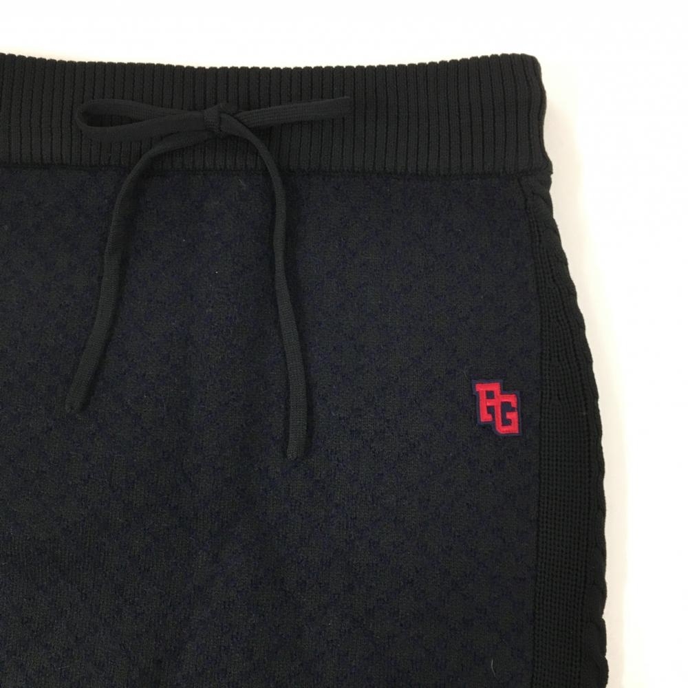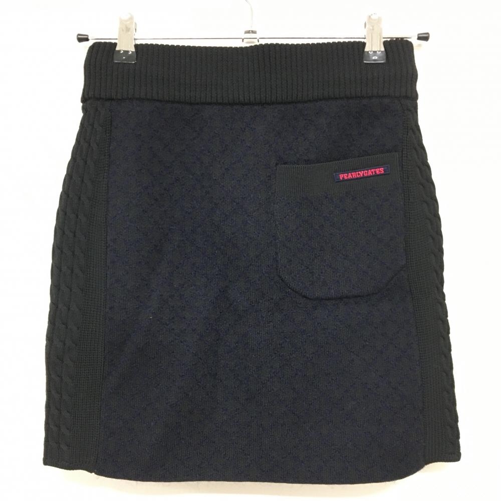 【超美品】パーリーゲイツ ニットスカート 黒×ダークネイビー 格子 サイドケーブル編み レディース 0(S) ゴルフウェア PEARLY GATES