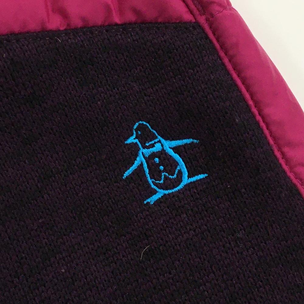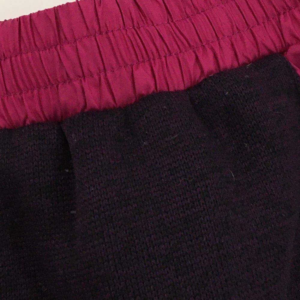 【美品】マンシングウェア 中綿ニットスカート パープル×ピンク 前面ニット ウエストゴム&調節紐 レディース M ゴルフウェア Munsingwear