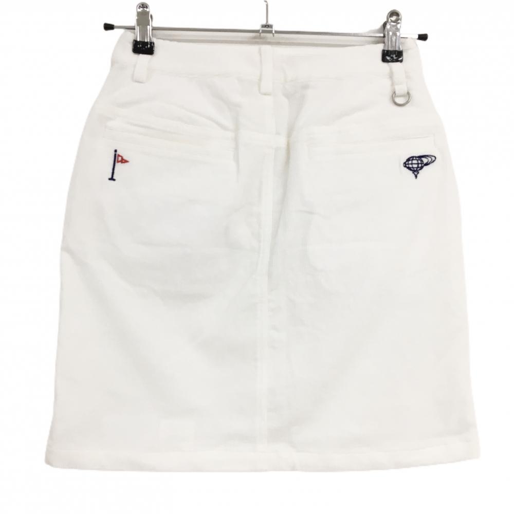 【超美品】ビームスゴルフ コーデュロイスカート 白 ポケット口ロゴ刺しゅう レディース S ゴルフウェア BEAMS GOLF