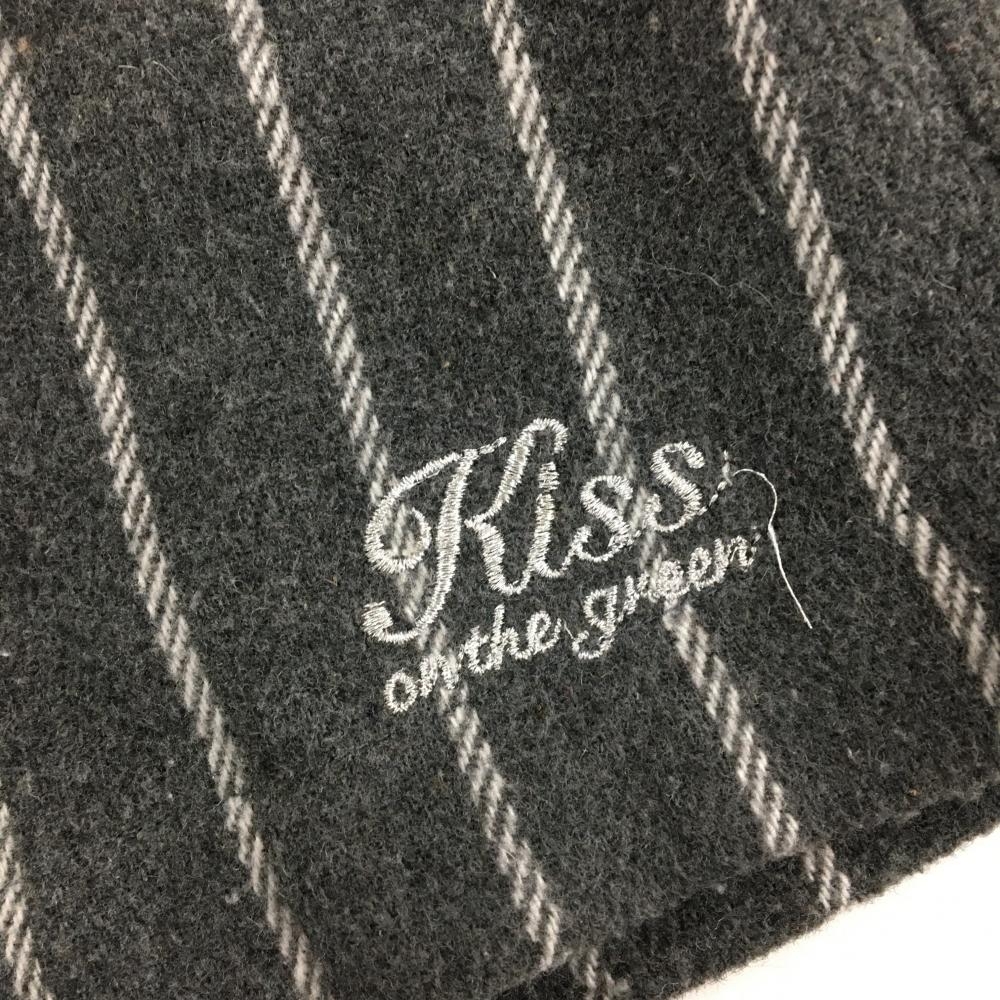 【美品】キスオンザグリーン キュロットスカート グレー×白 ストライプ 起毛素材 秋冬 レディース 2(M) ゴルフウェア kiss on the green