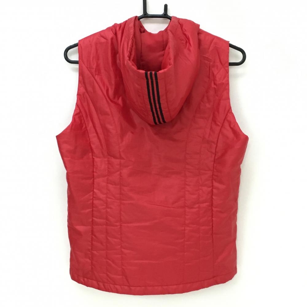 【美品】アディダス 中綿フード付ベスト レッド フード3ライン レディース M/M ゴルフウェア adidas