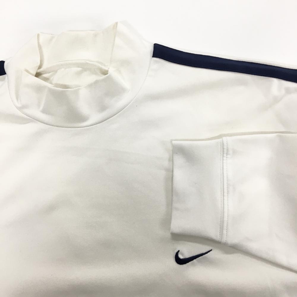 ナイキ 長袖ハイネックシャツ 白×ネイビー 肩ライン ロゴ刺しゅう メンズ サイズ表記なし ゴルフウェア NIKE