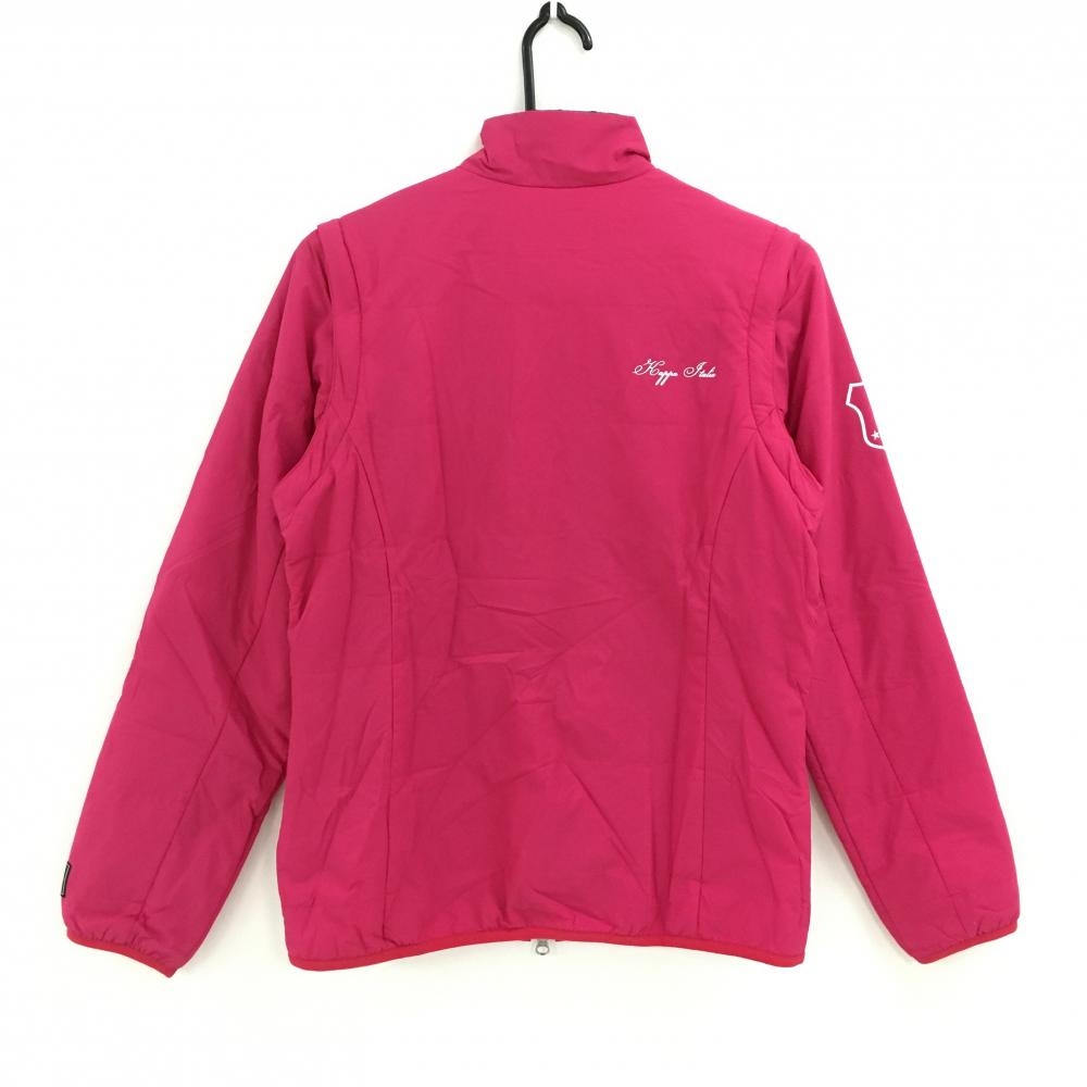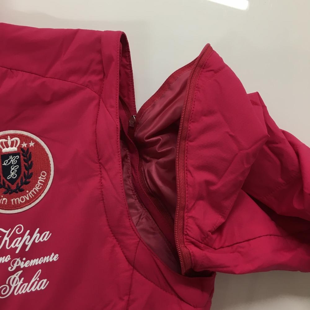 【美品】カッパ 2WAY中綿ジャケット ピンク 胸元ワッペン 裾ロゴプリント 袖着脱可 レディース L ゴルフウェア Kappa