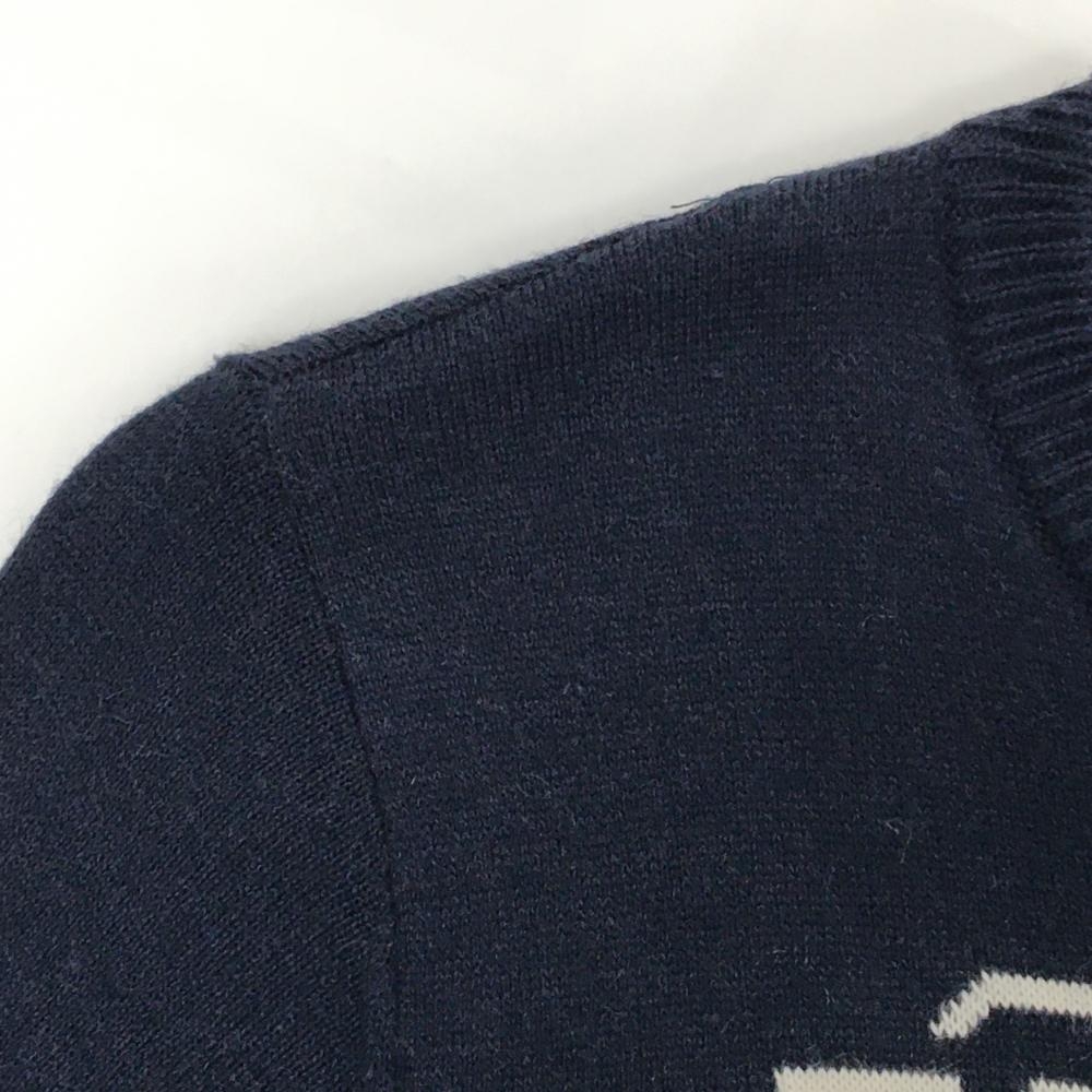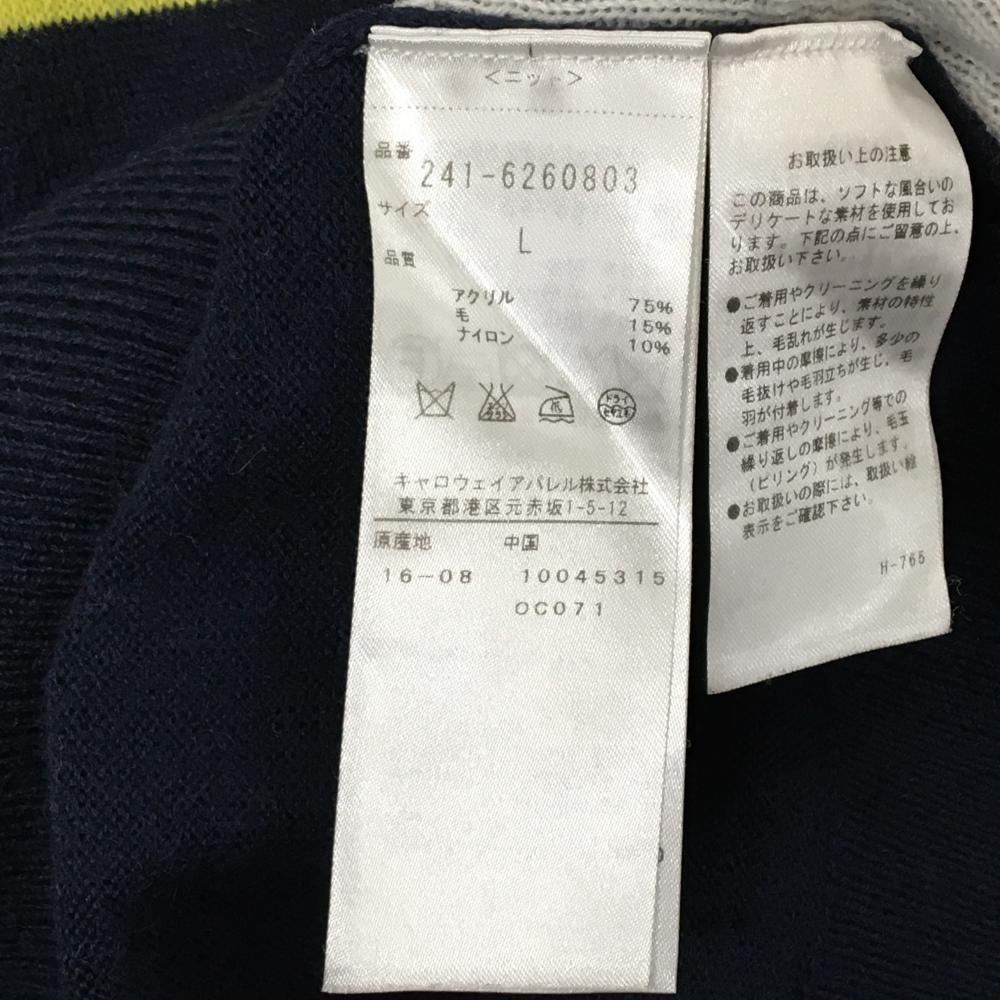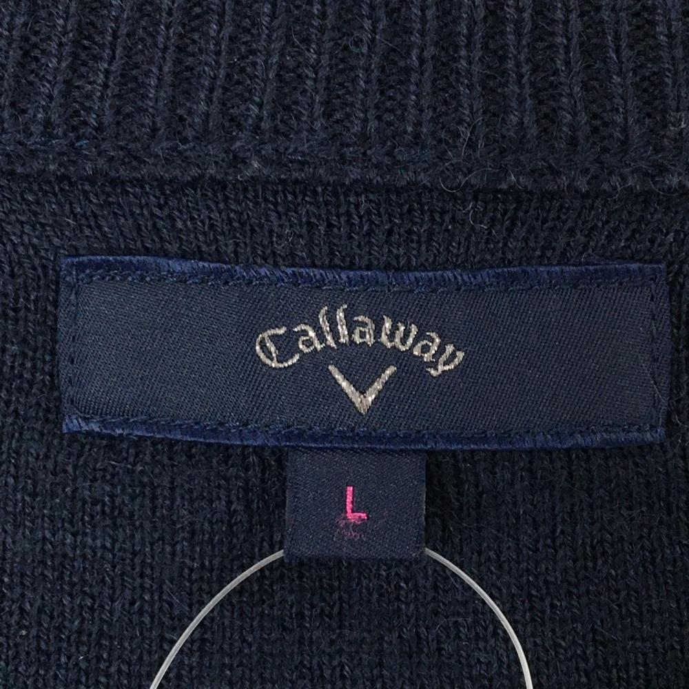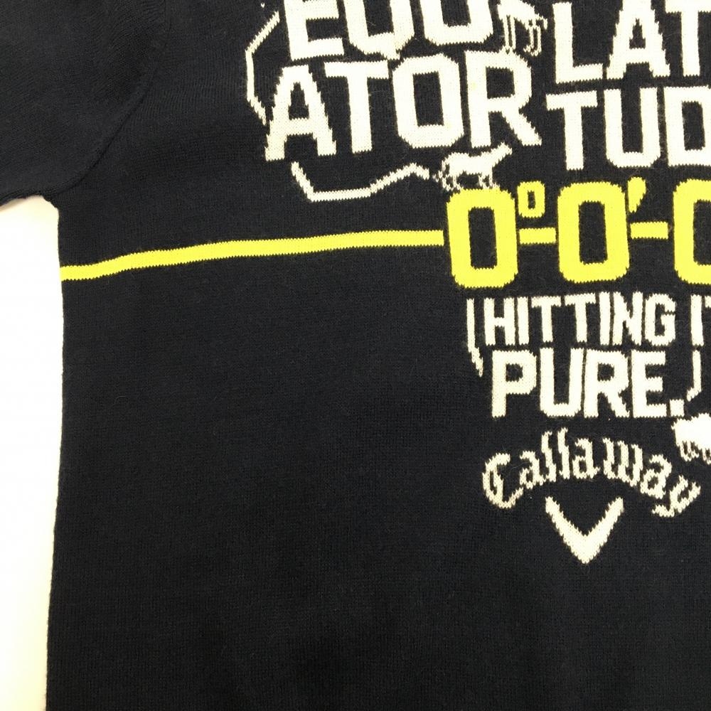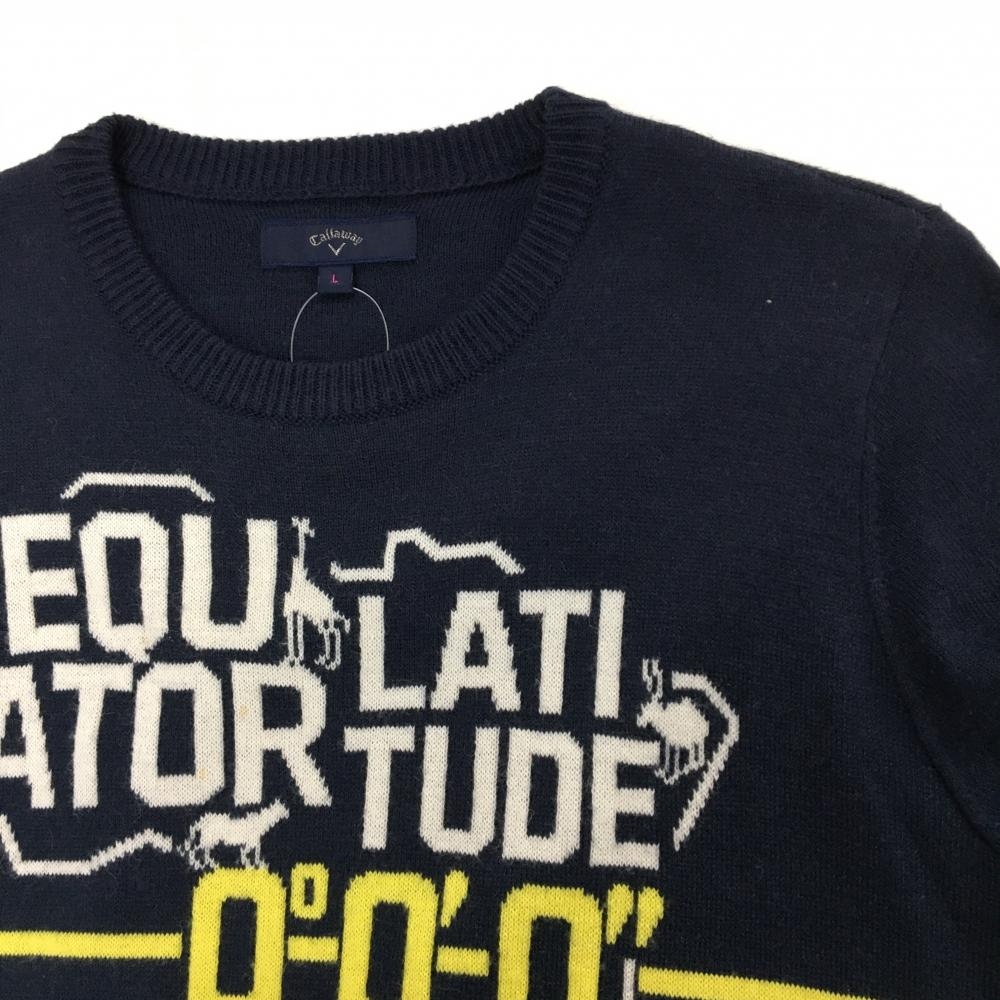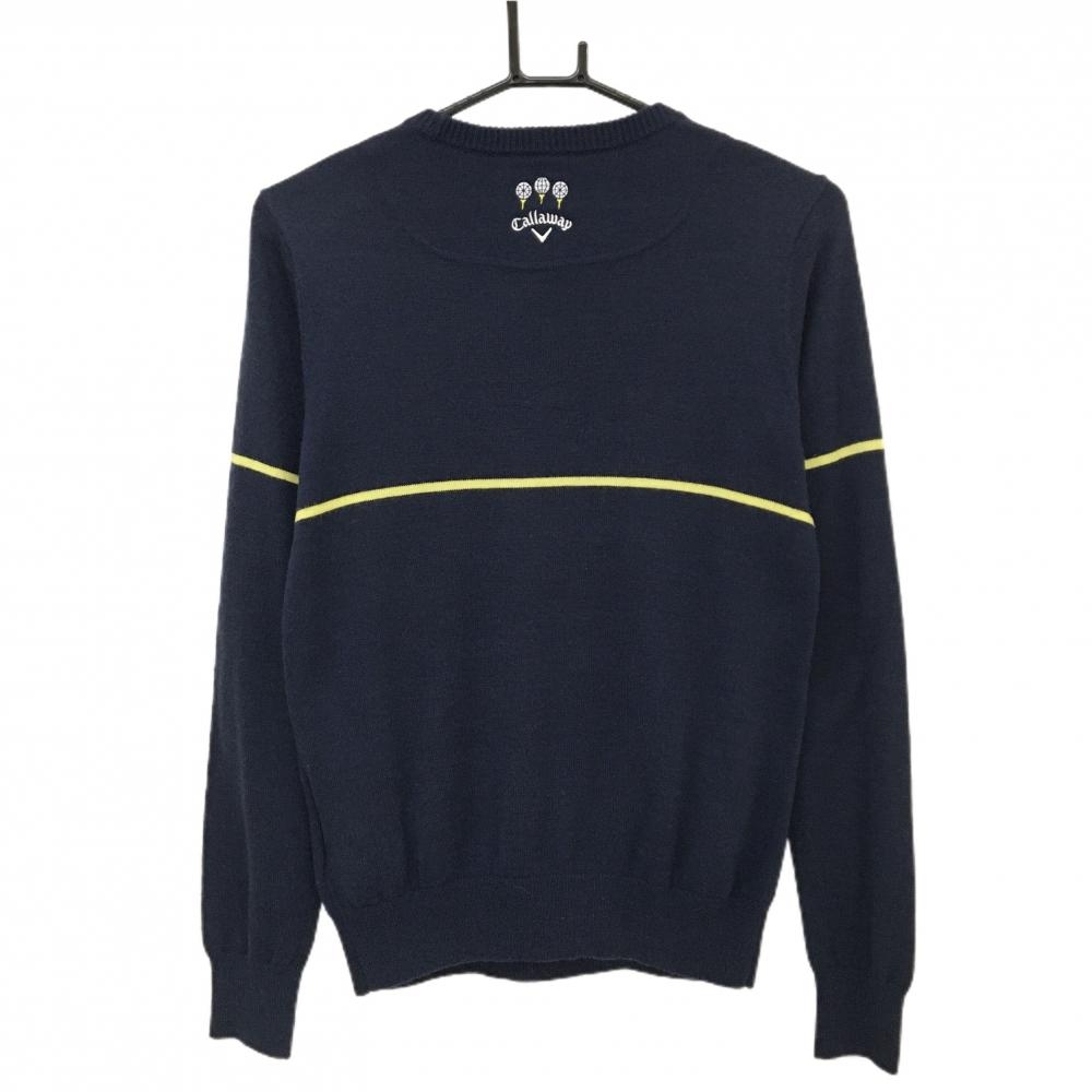 キャロウェイ セーター ネイビー×白 ラインイエロー ウール混 ニット レディース L ゴルフウェア Callaway