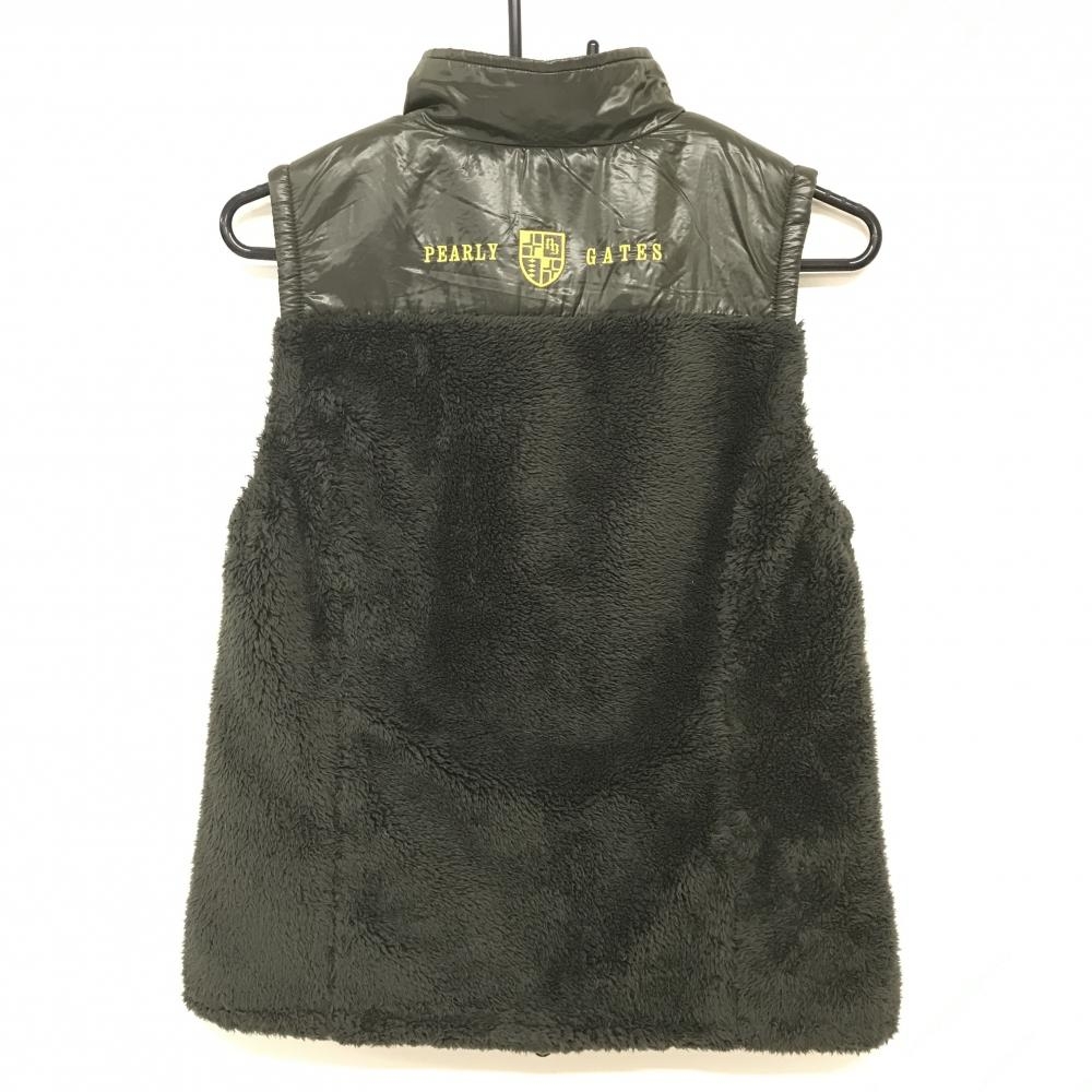 パーリーゲイツ 中綿切替ベスト カーキ 背面ボア ロゴイエロー レディース 1(M) ゴルフウェア PEARLY GATES