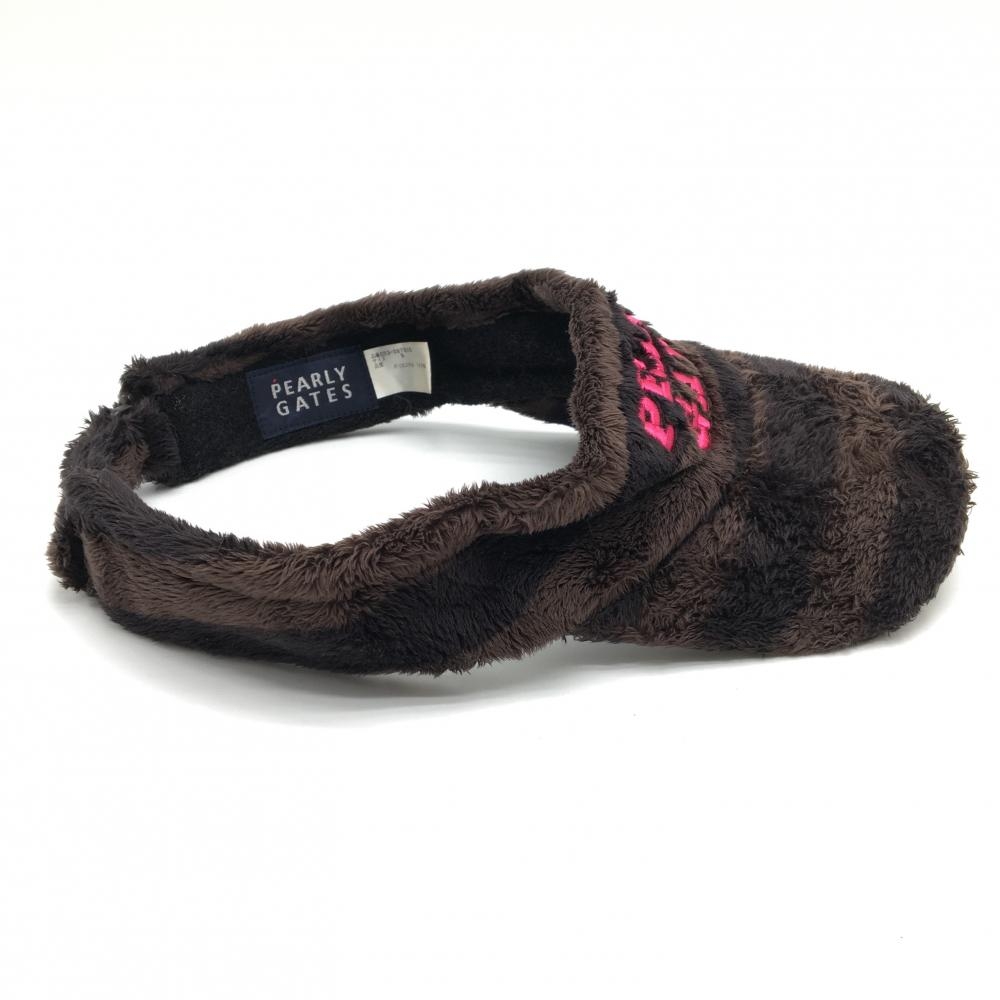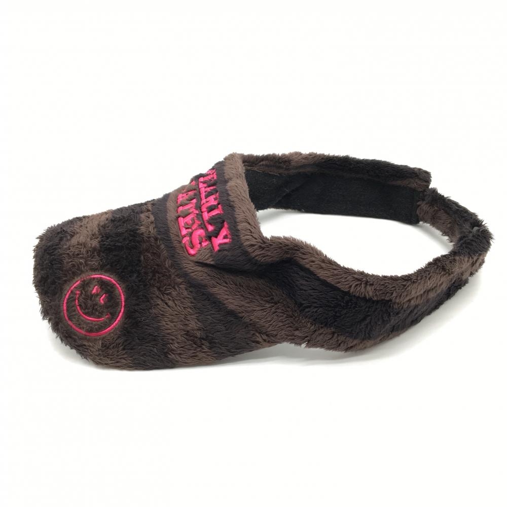 【美品】パーリーゲイツ サンバイザー ブラウン×ピンク ボア ニコちゃん スマイル S ゴルフウェア PEARLY GATES
