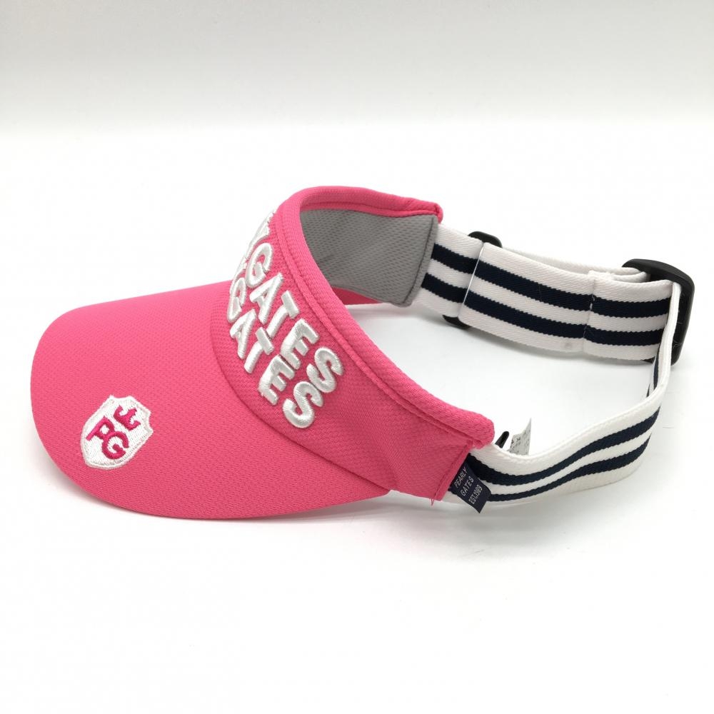 【超美品】パーリーゲイツ サンバイザー ピンク×白 立体ロゴ刺しゅう FR ゴルフウェア PEARLY GATES