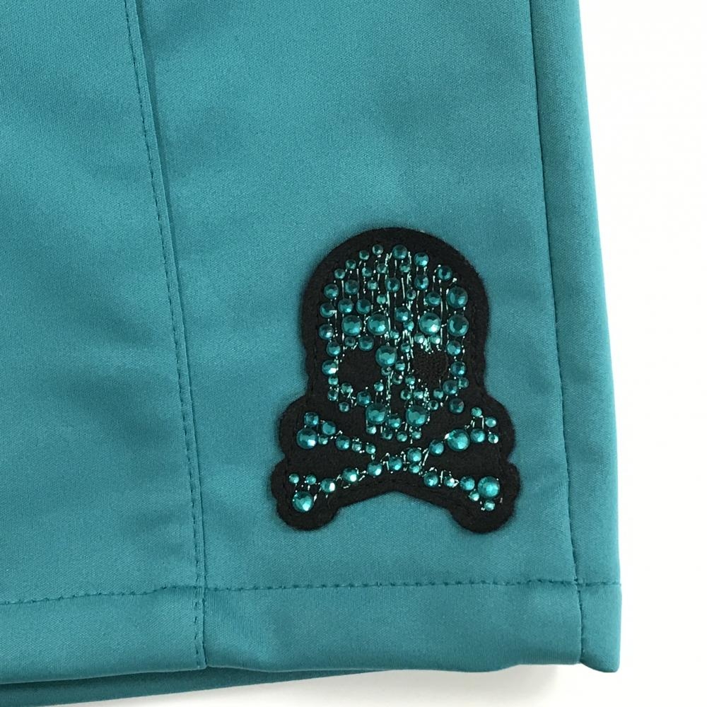 【超美品】ダンスウィズドラゴン スカート グリーン 裏微起毛 スカル レディース 3(L) ゴルフウェア Dance With Dragon