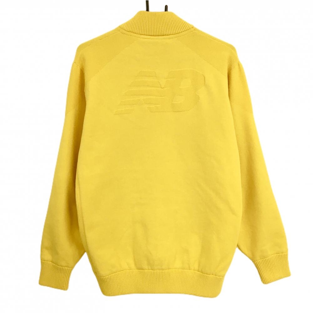 【超美品】ニューバランスゴルフ ニットジャケット イエロー 上部凸凹織 バックロゴ 裏地付き メンズ 6(XL) ゴルフウェア New Balance