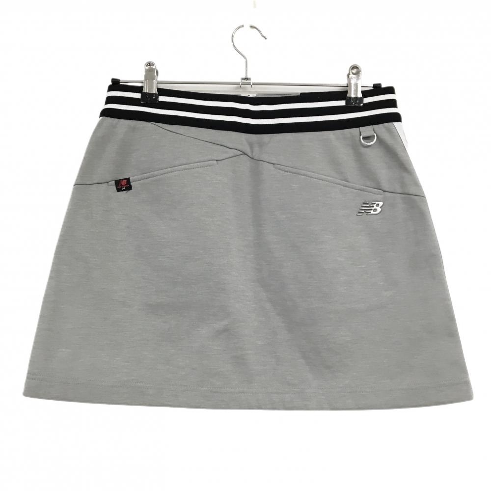 【美品】ニューバランスゴルフ スカート ライトグレー×白×黒 裏起毛 ウエストゴム レディース 2(L) ゴルフウェア New Balance