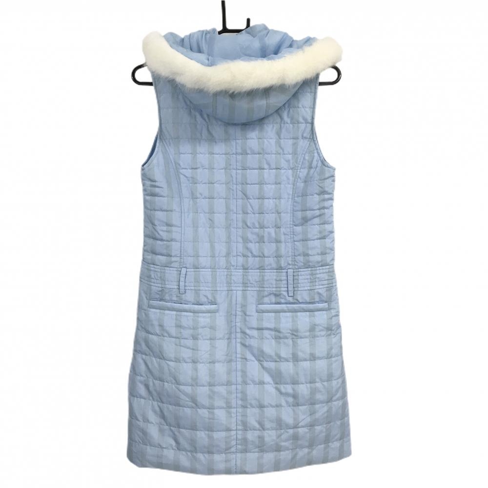 【美品】キャロウェイ 中綿ノースリーブワンピース ライトブルー×グレー ストライプ レディース S ゴルフウェア Callaway