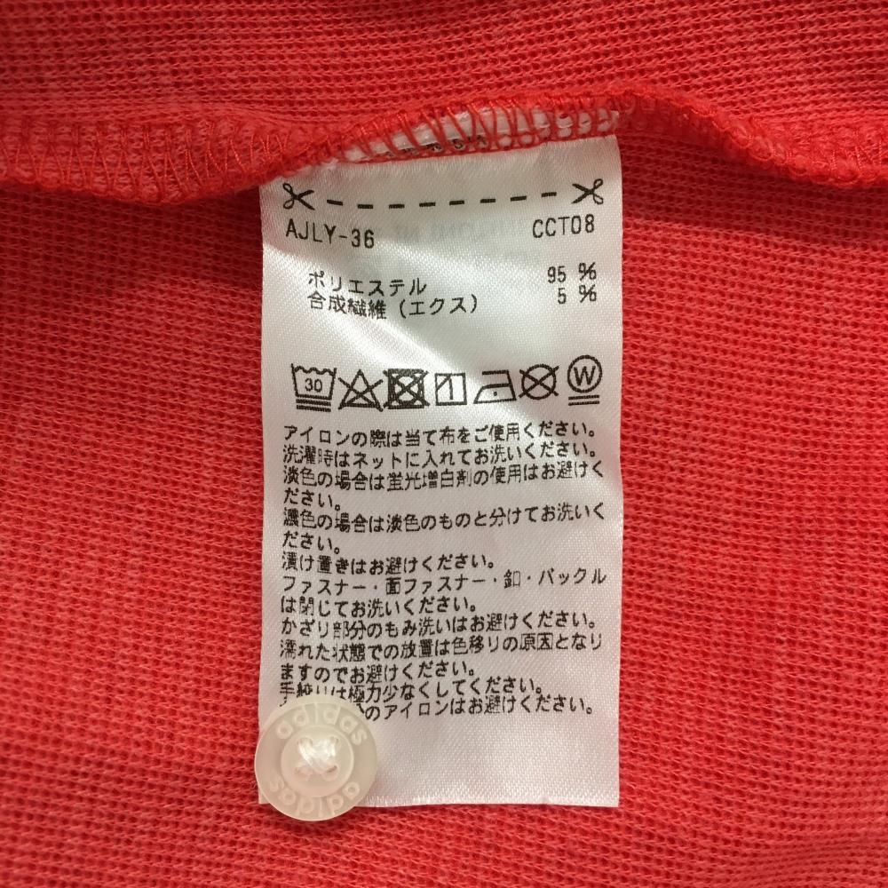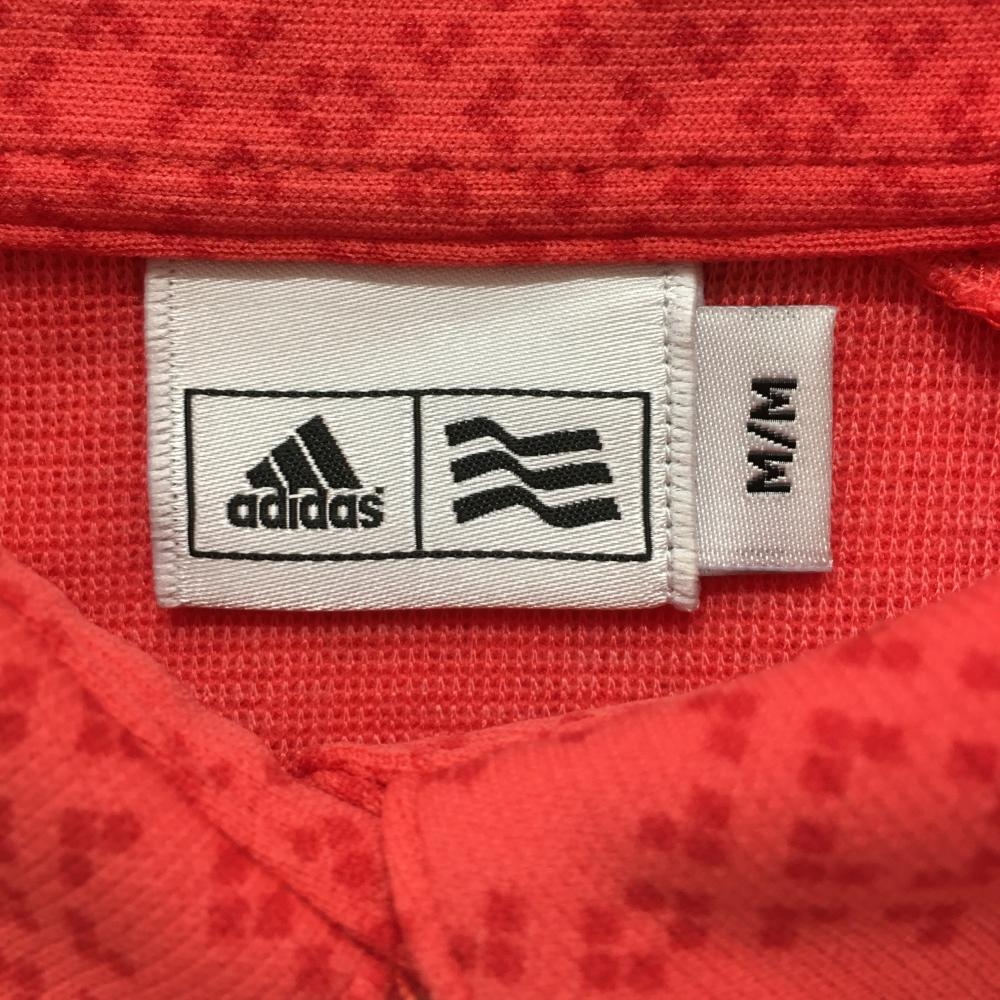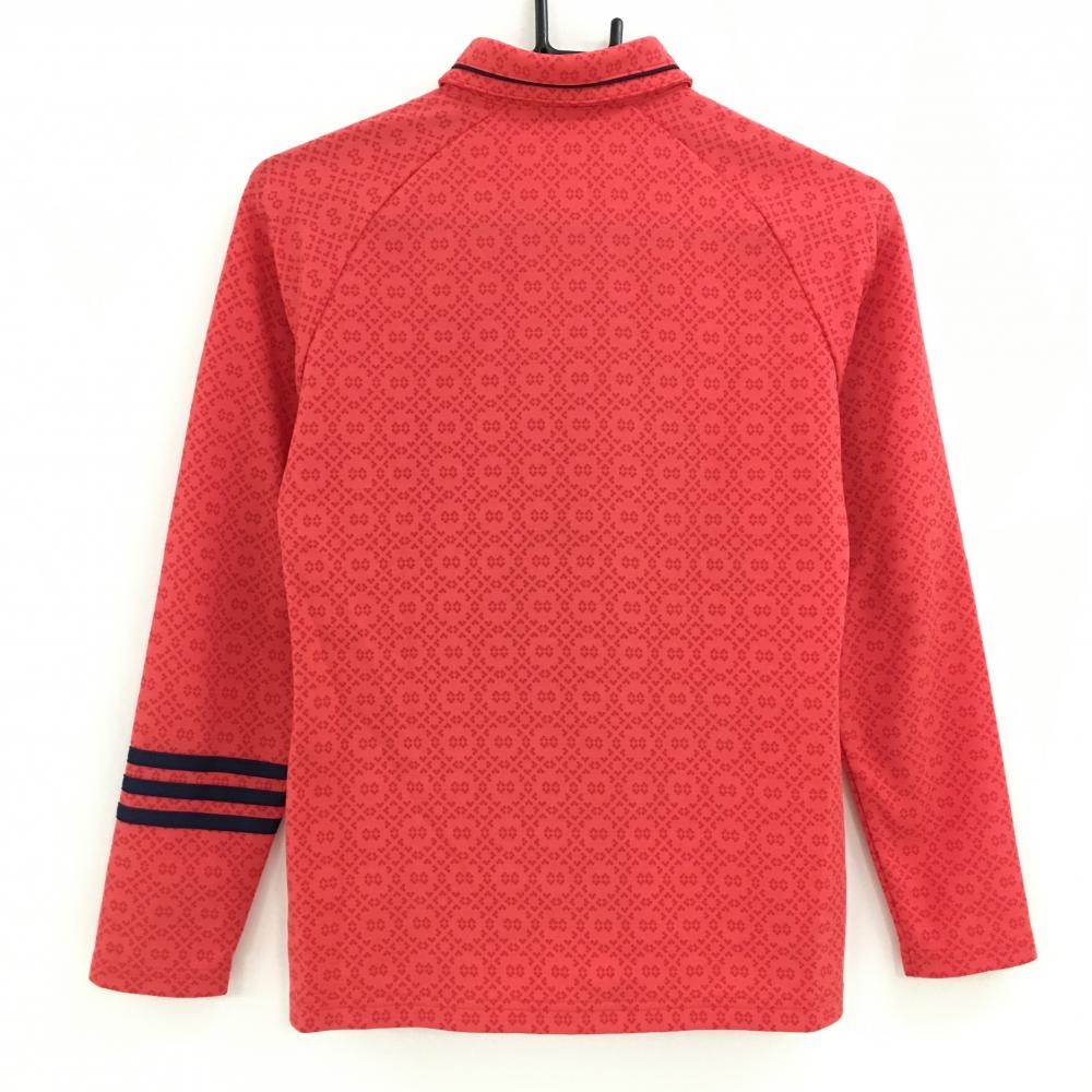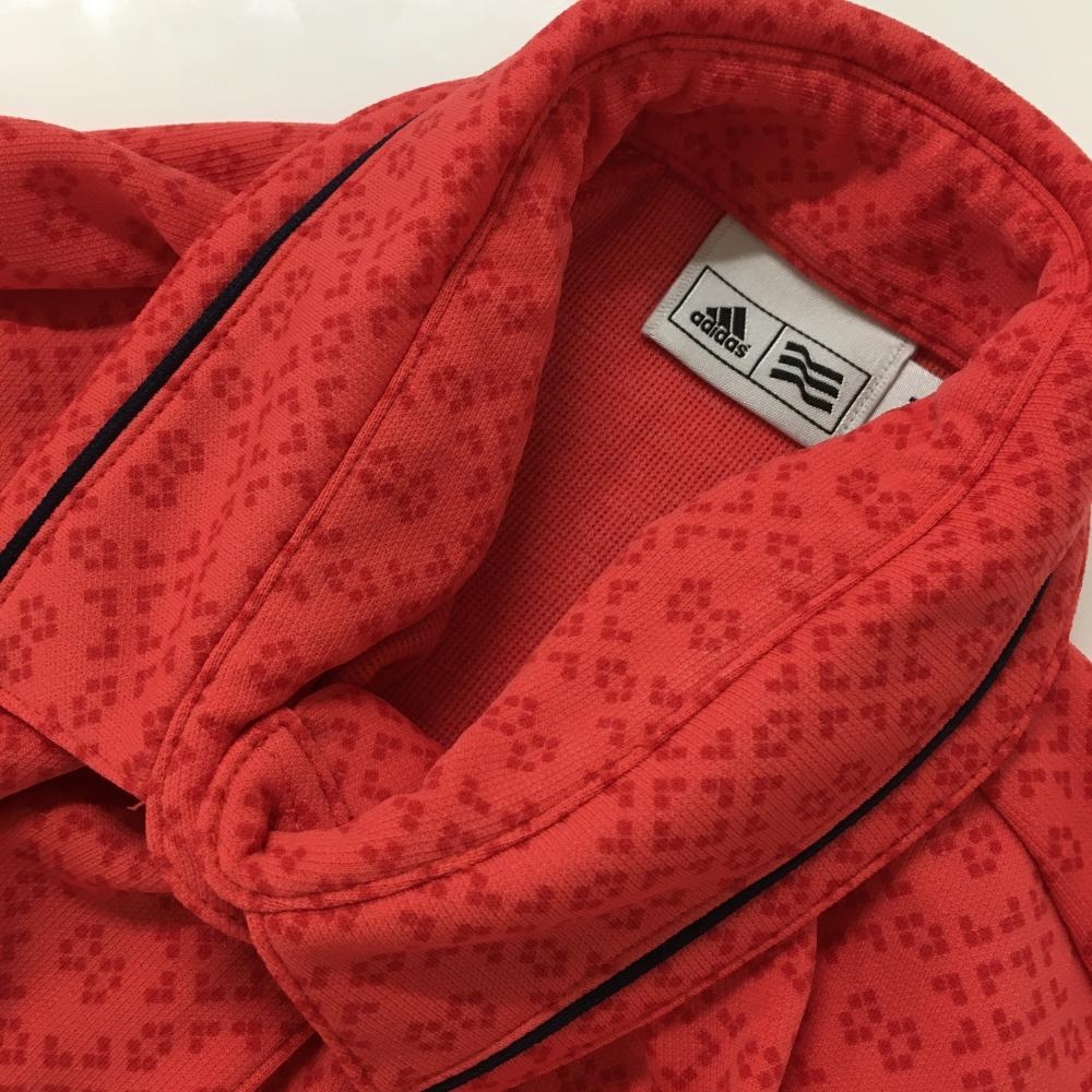 【美品】アディダス 長袖ポロシャツ レッド系 総柄 ロゴネイビー 袖3ライン レディース M/M ゴルフウェア adidas
