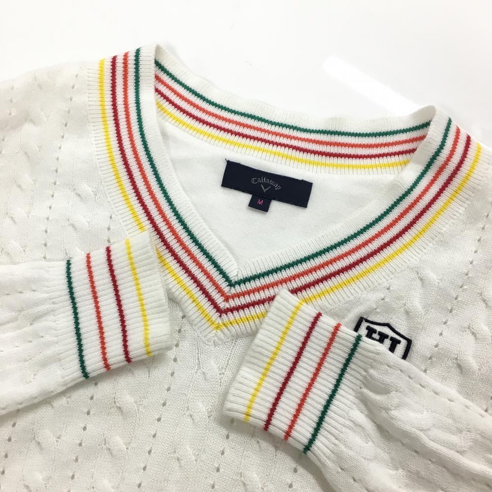 【美品】キャロウェイ セーター 白 ケーブル編み Vネック ニット レディース M ゴルフウェア Callaway
