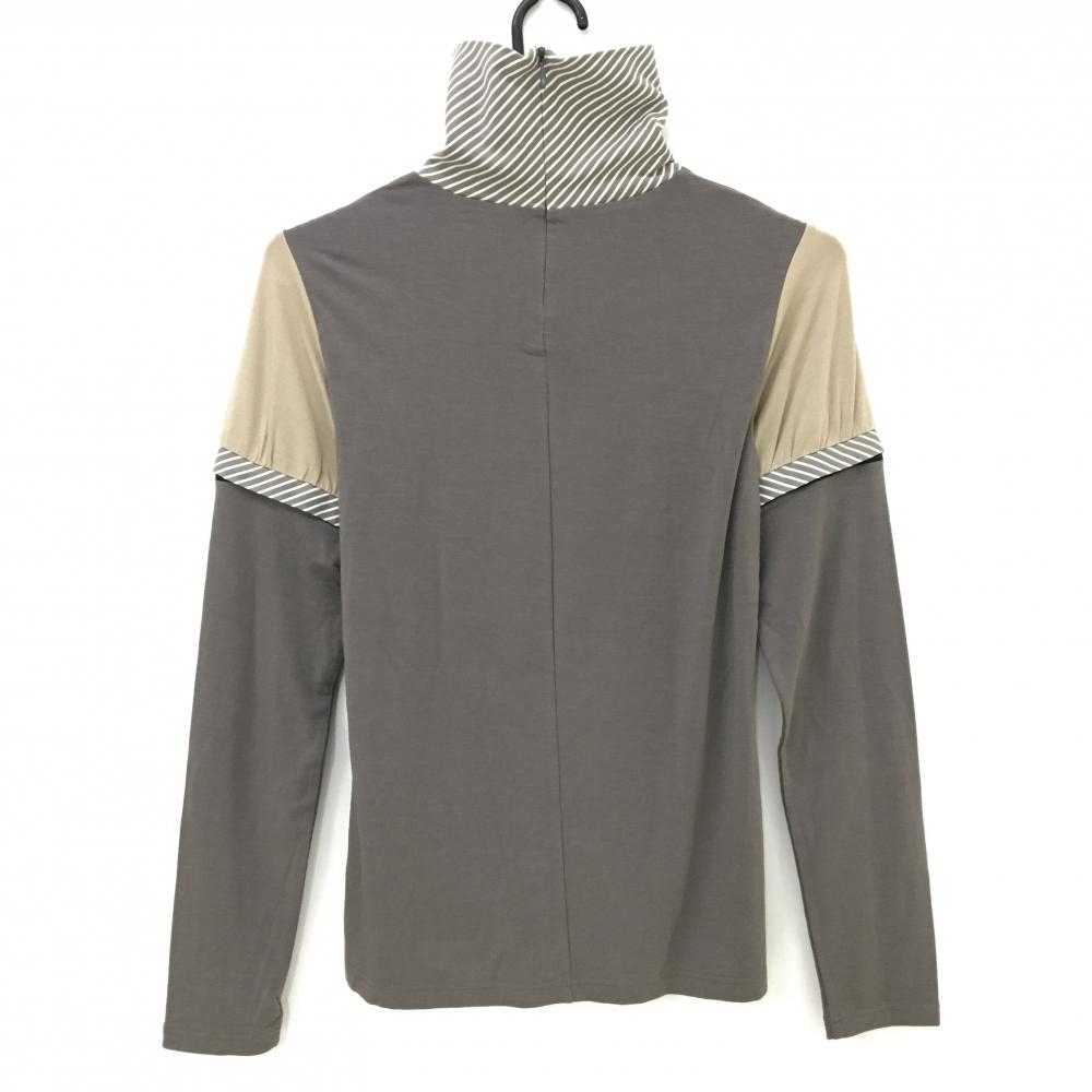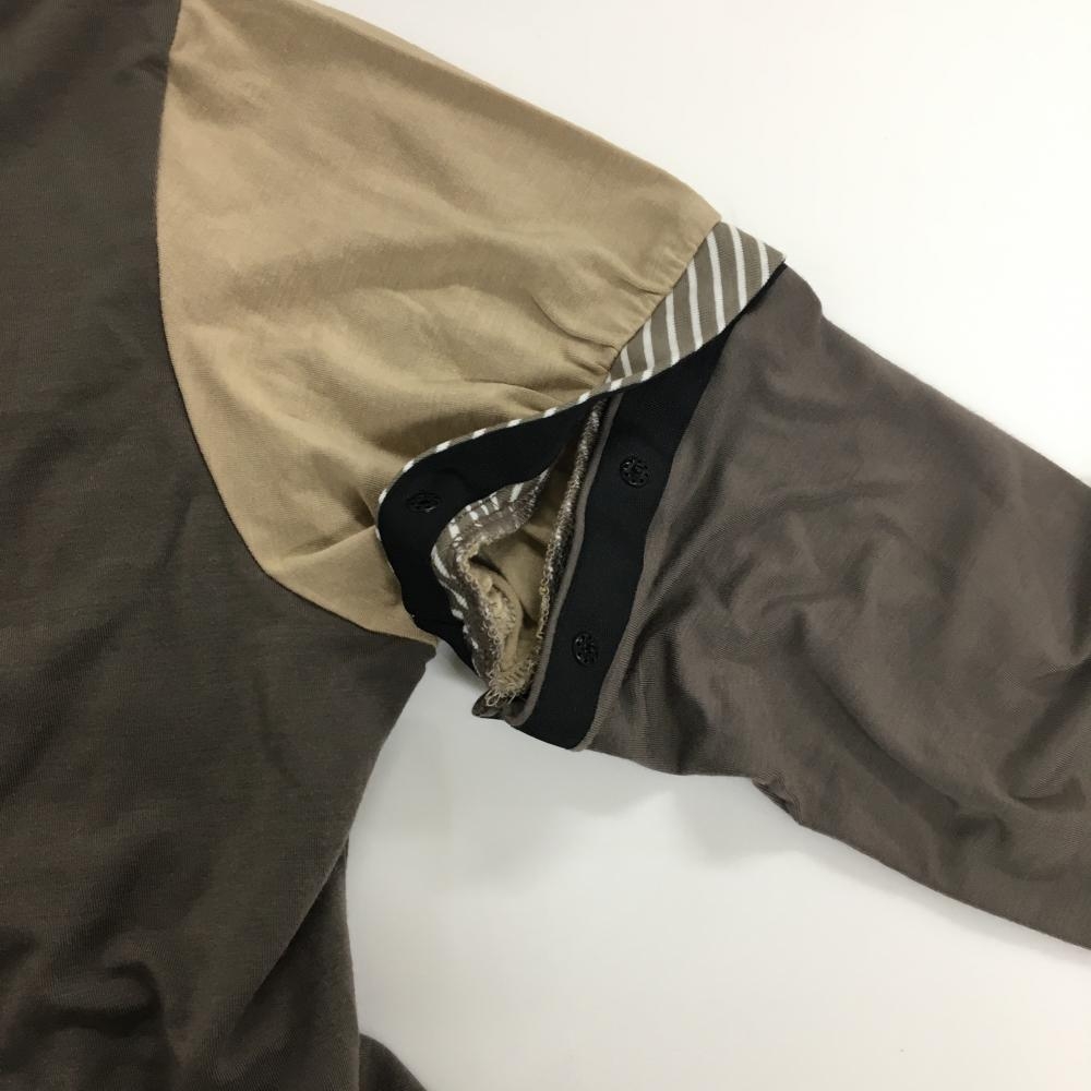 【新品】キャロウェイ 2WAY長袖ハイネックシャツ ブラウン×白 ネック斜めストライプ レディース L ゴルフウェア Callaway