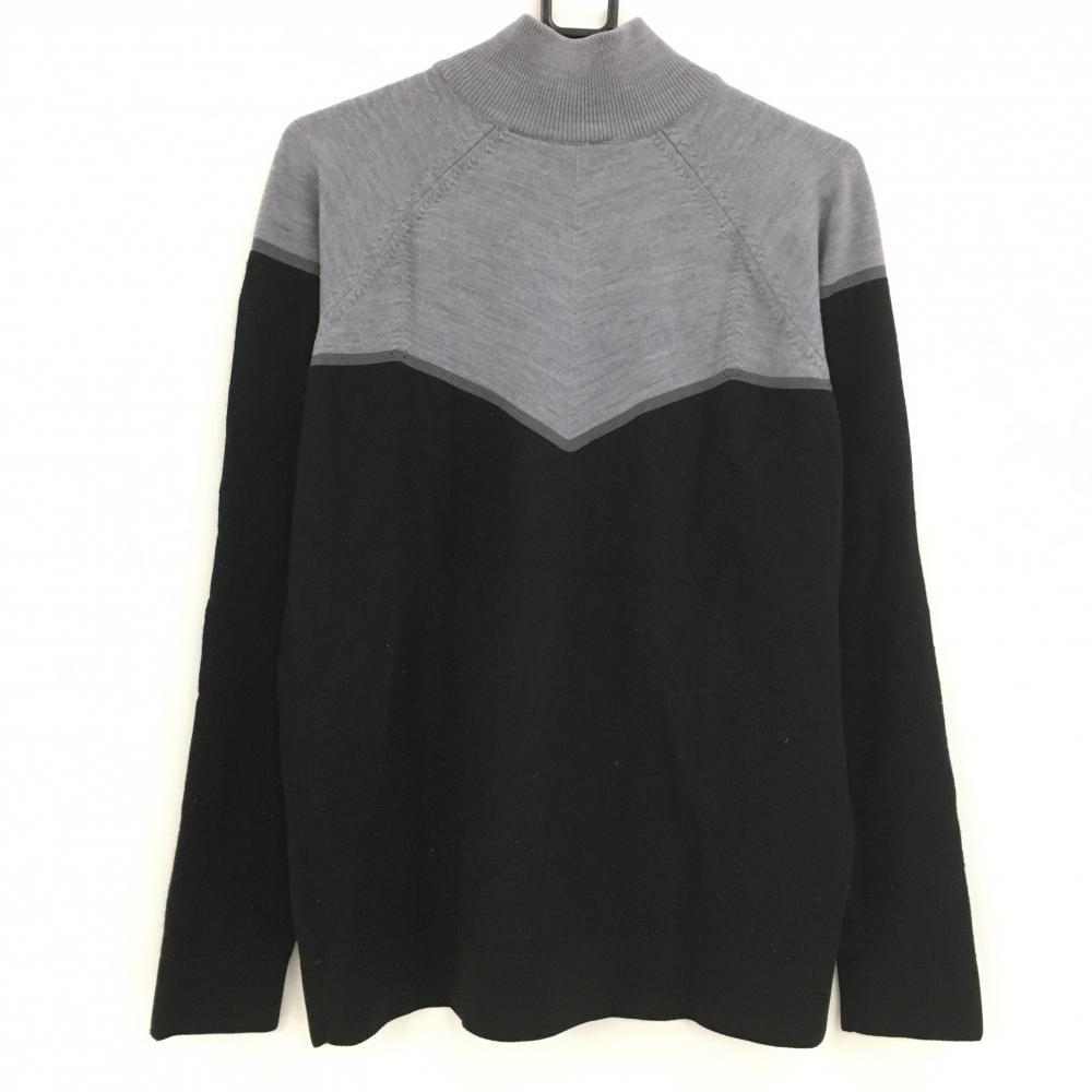 デサントゴルフ ハイネックセーター 黒×グレー ニット ウール混 ハーフジップ 中田英寿 メンズ 0(XL) ゴルフウェア DESCENTE