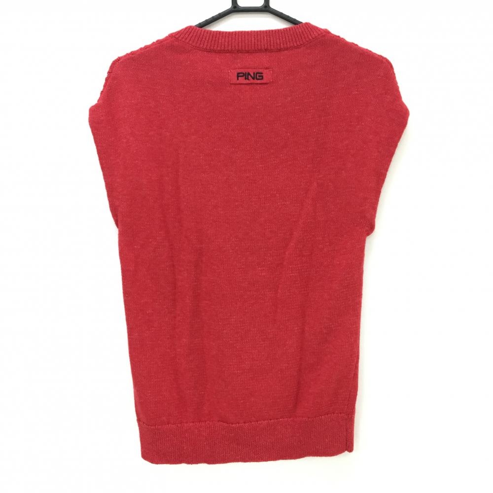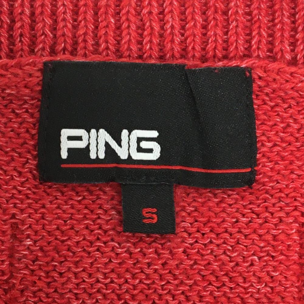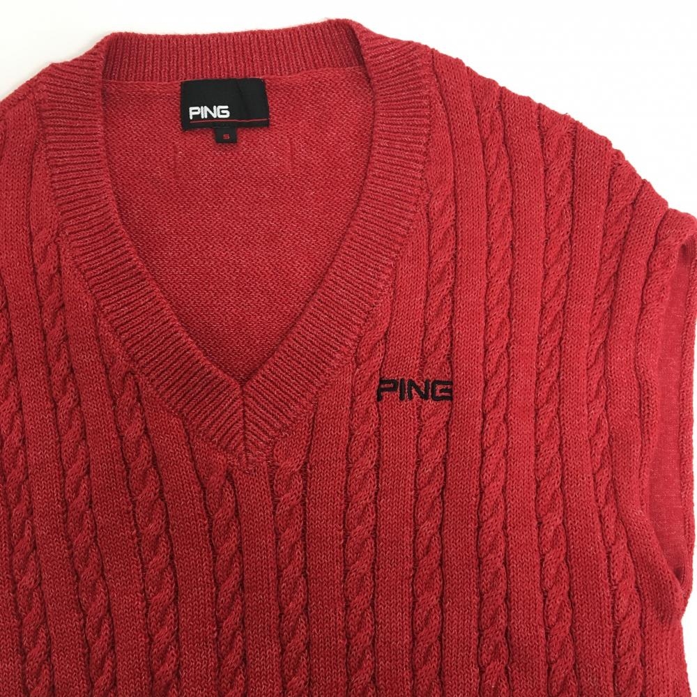【超美品】ピン ニットベスト レッド ケーブル編み コットン混 メンズ S ゴルフウェア PING