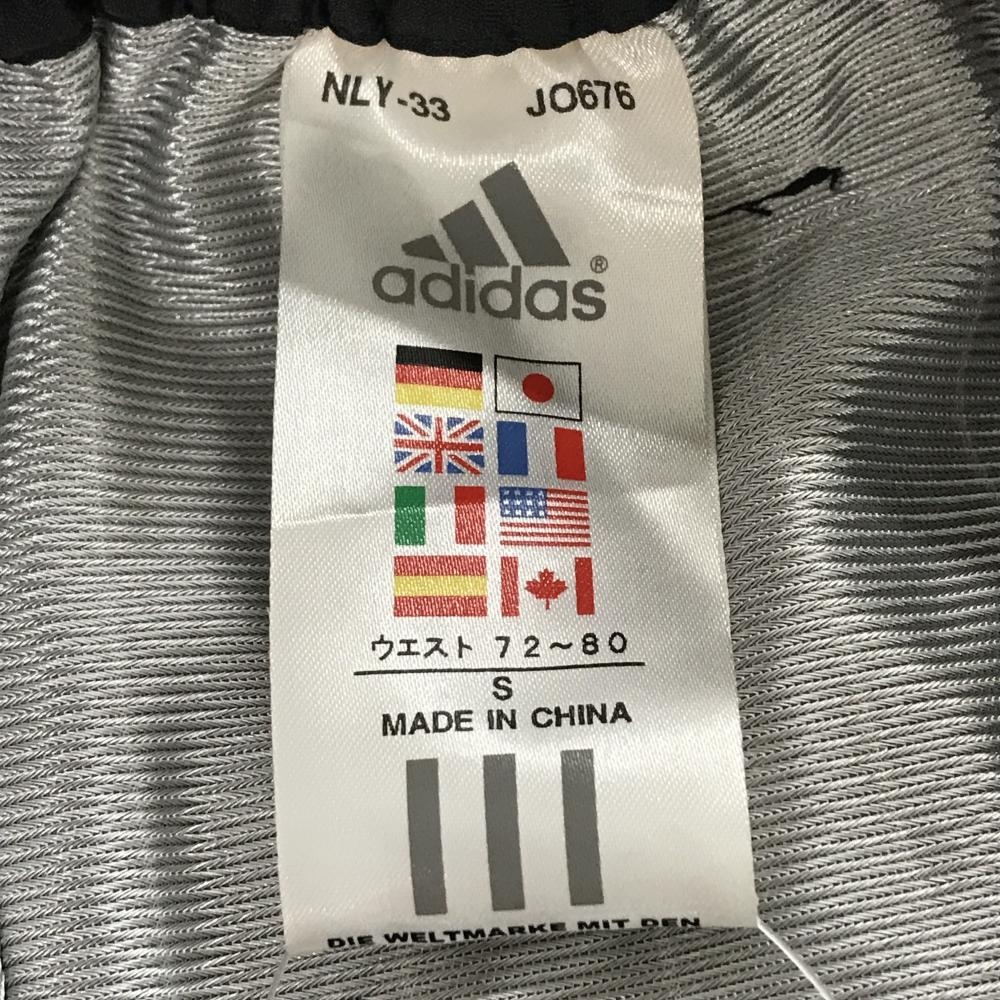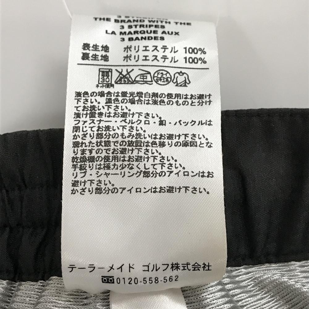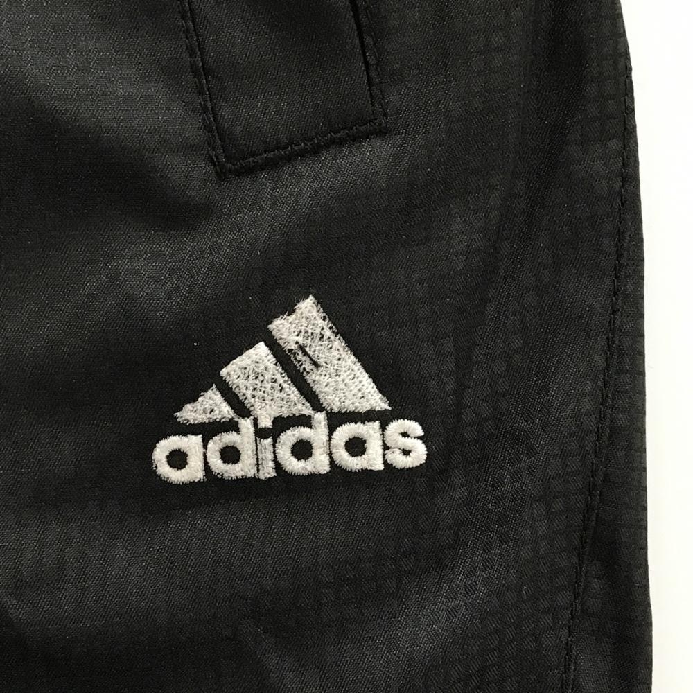【美品】アディダス パンツ 黒 格子柄地模様 蓄熱裏地 左サイド3ライン 裾ドローコード ウエストゴム メンズ S/P ゴルフウェア adidas