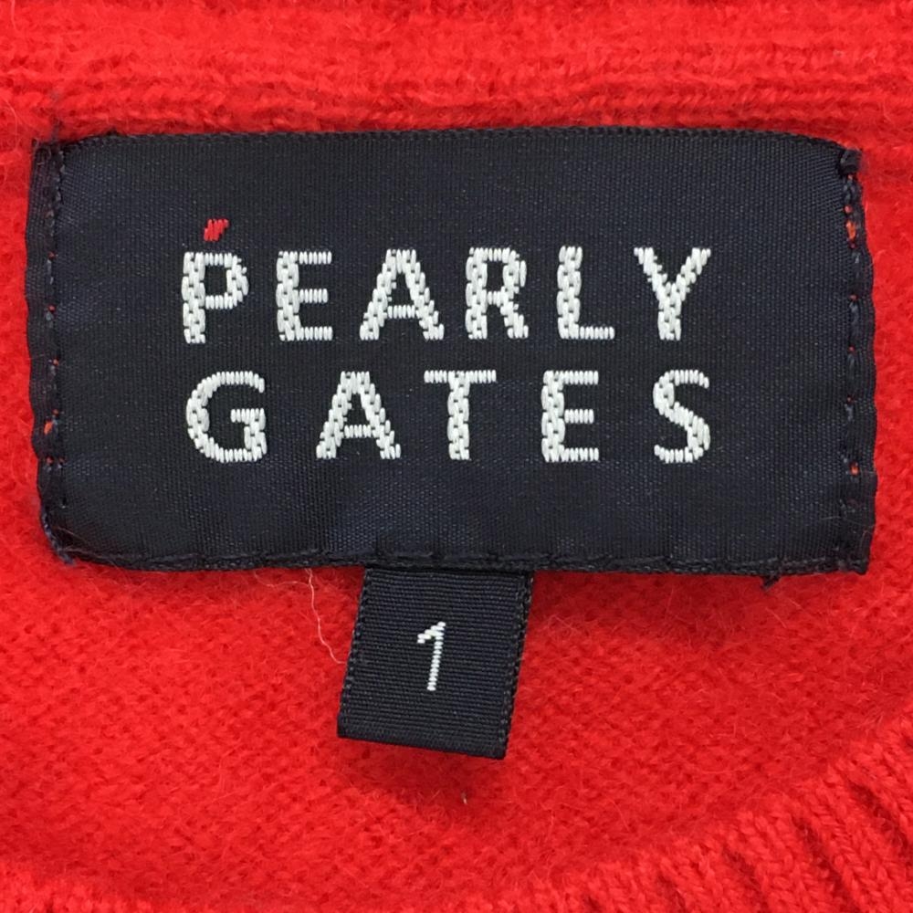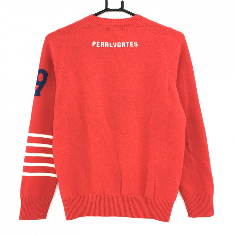 【美品】パーリーゲイツ セーター レッド×白 袖ライン カシミヤ100% ニット レディース 1(M) ゴルフウェア PEARLY GATES