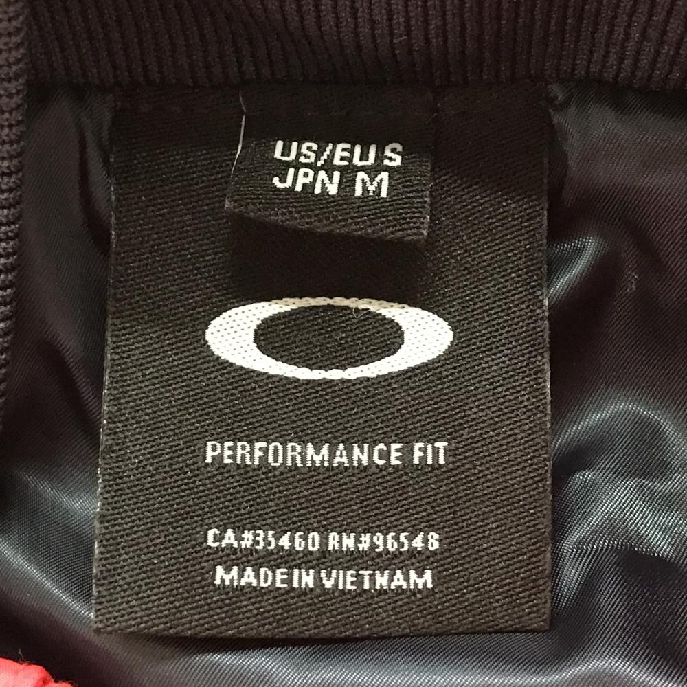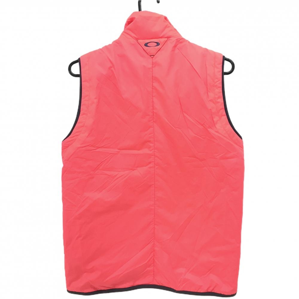 【美品】オークリー 中綿ベスト 蛍光レッド×黒 ロゴ刺しゅう メンズ M ゴルフウェア Oakley
