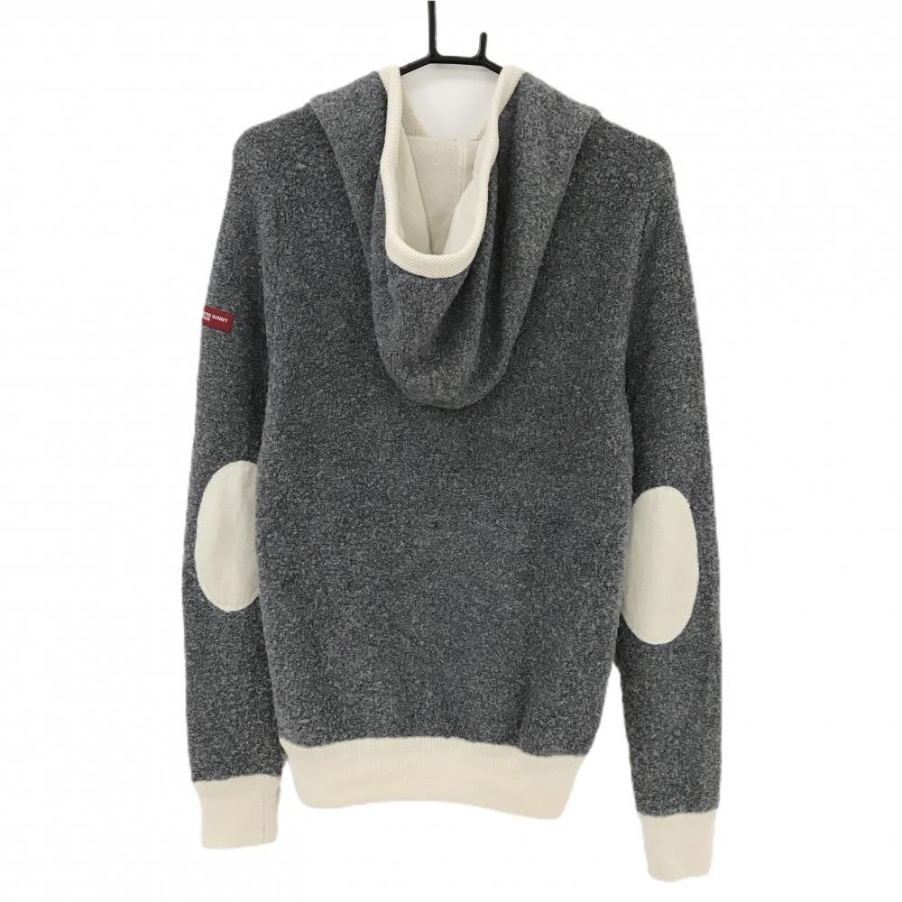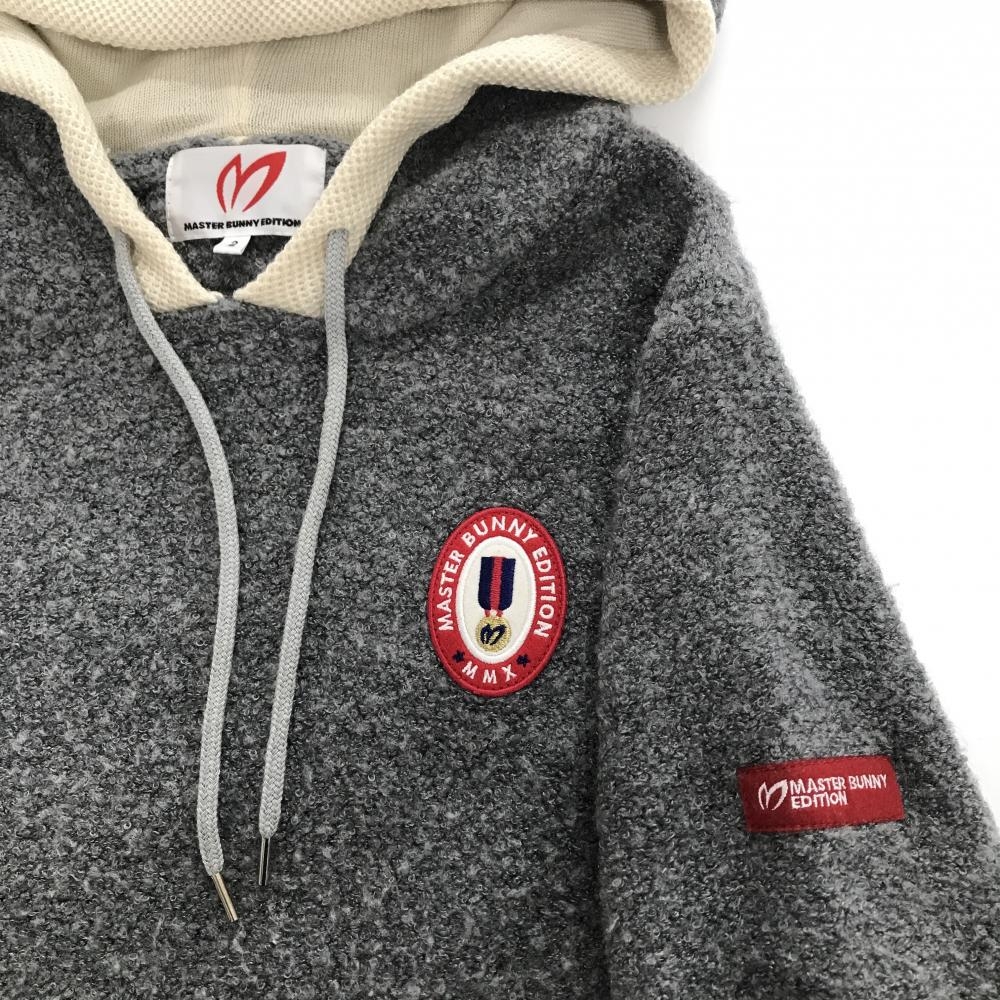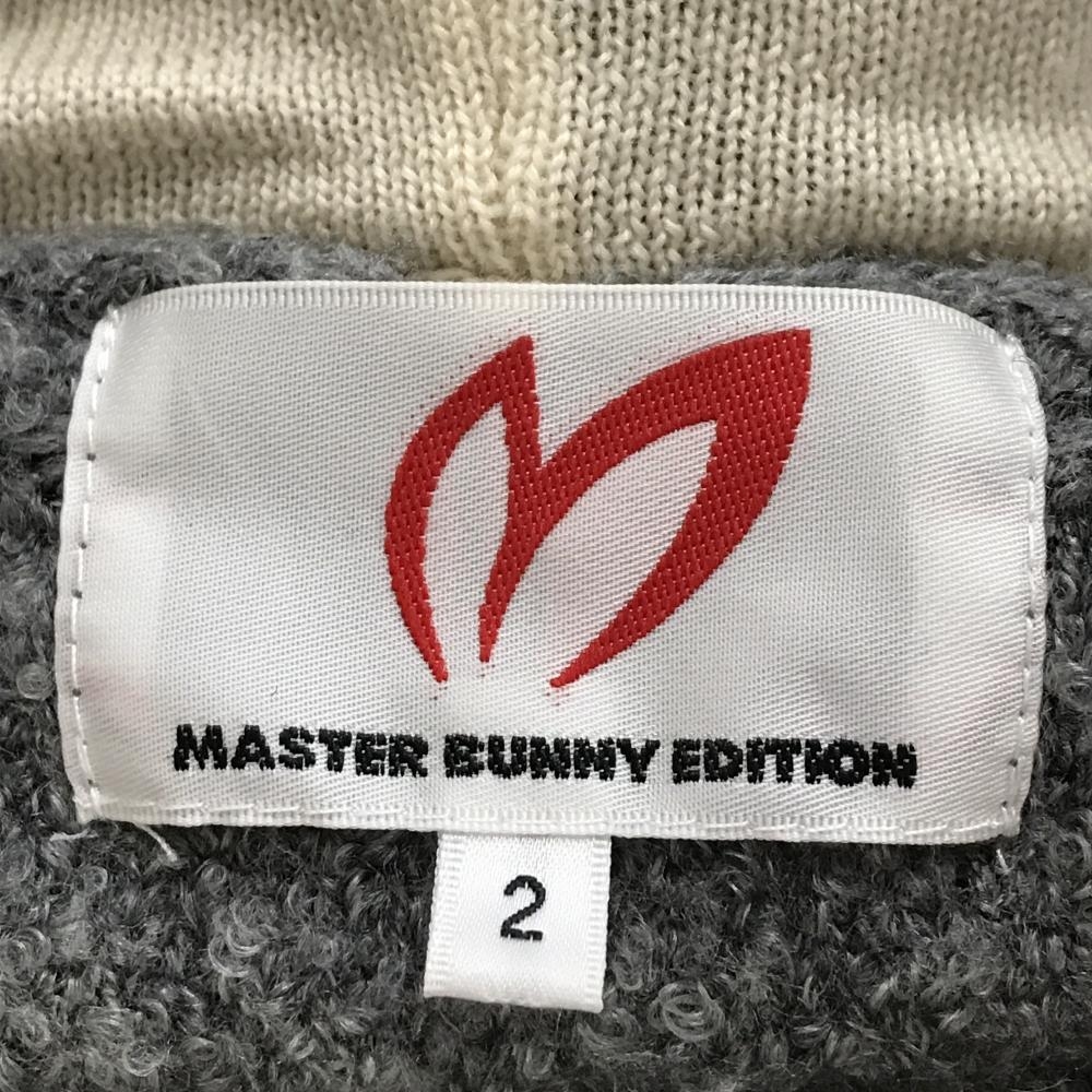 マスターバニー ニットボアパーカー グレー×アイボリー 胸ロゴワッペン ウール混 レディース 2(L) ゴルフウェア MASTER BUNNY EDITION
