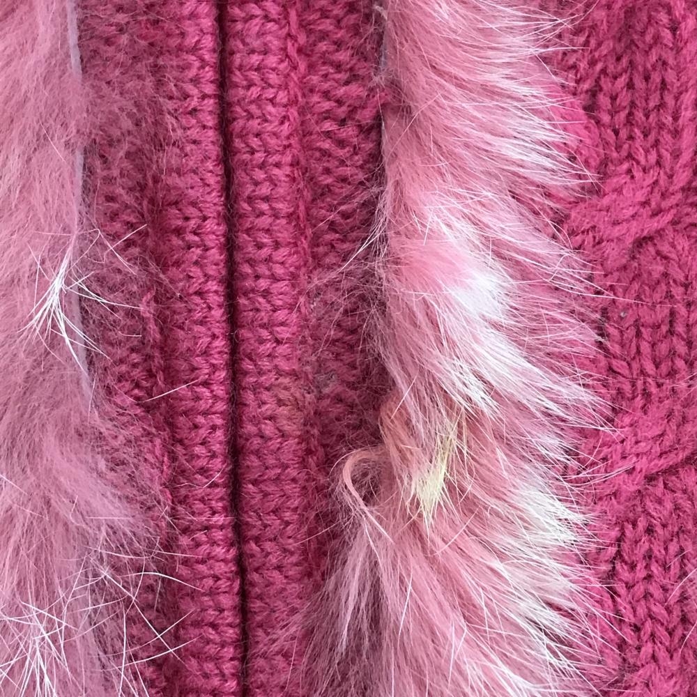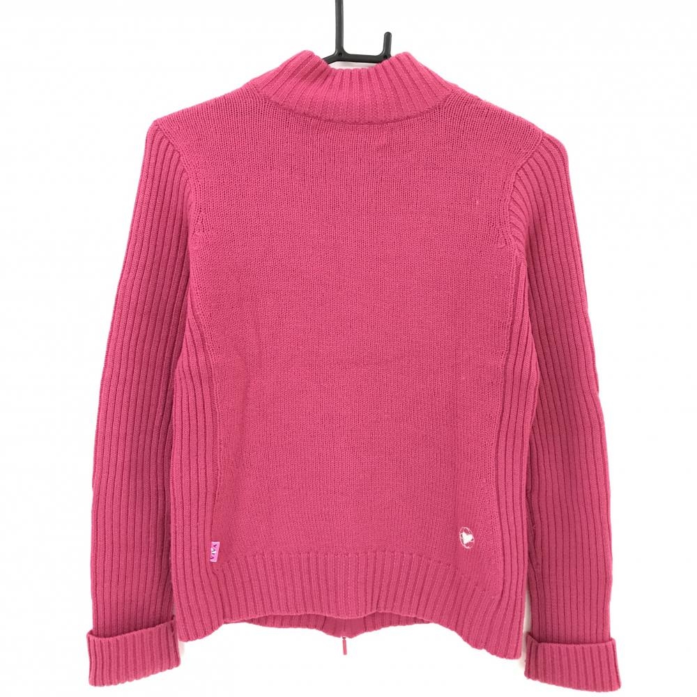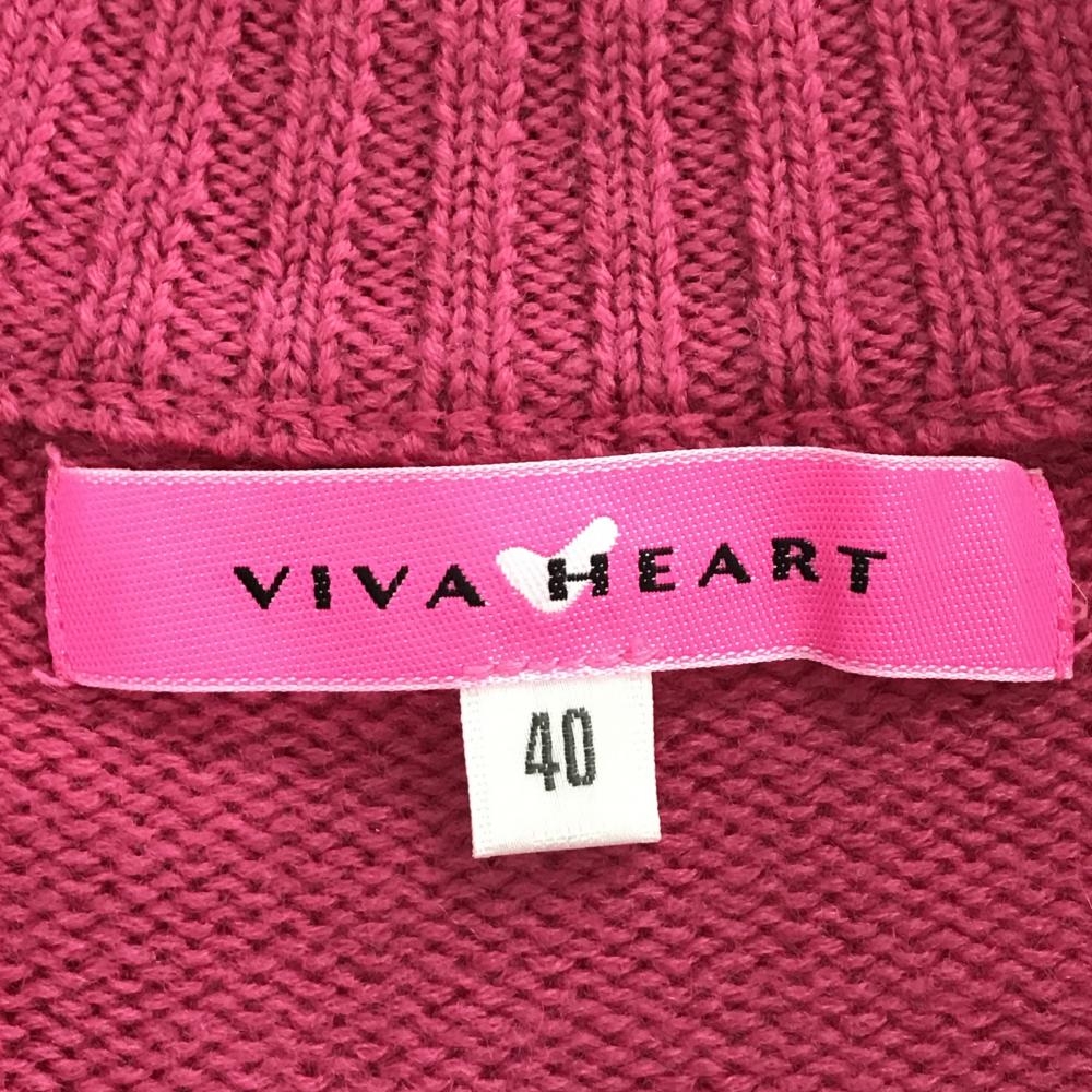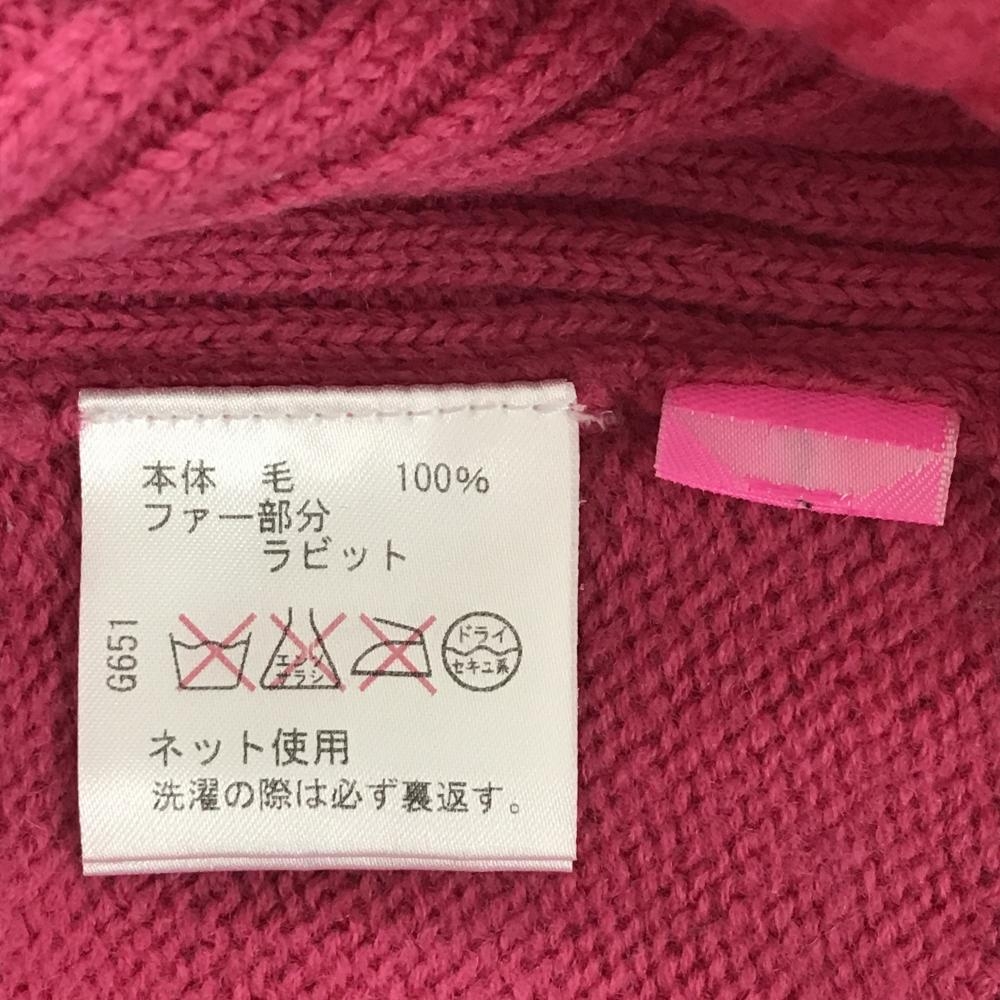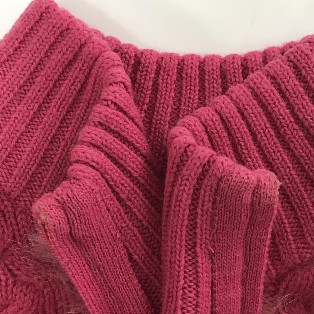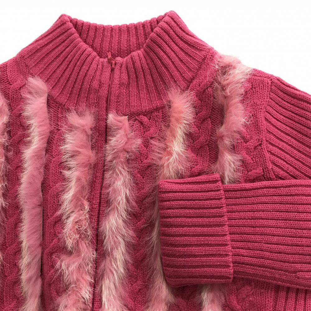 【美品】ビバハート ニットジャケット ピンク ケーブル編み ラビットファー ウール100% レディース 40(M) ゴルフウェア VIVA HEART
