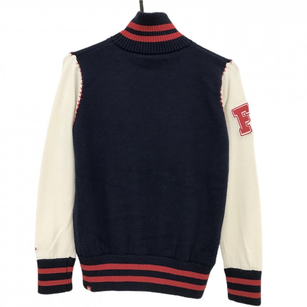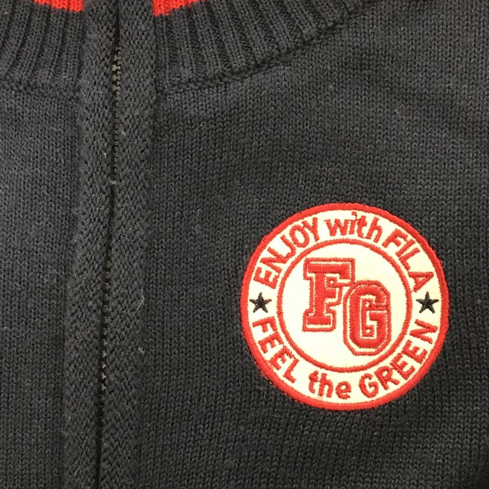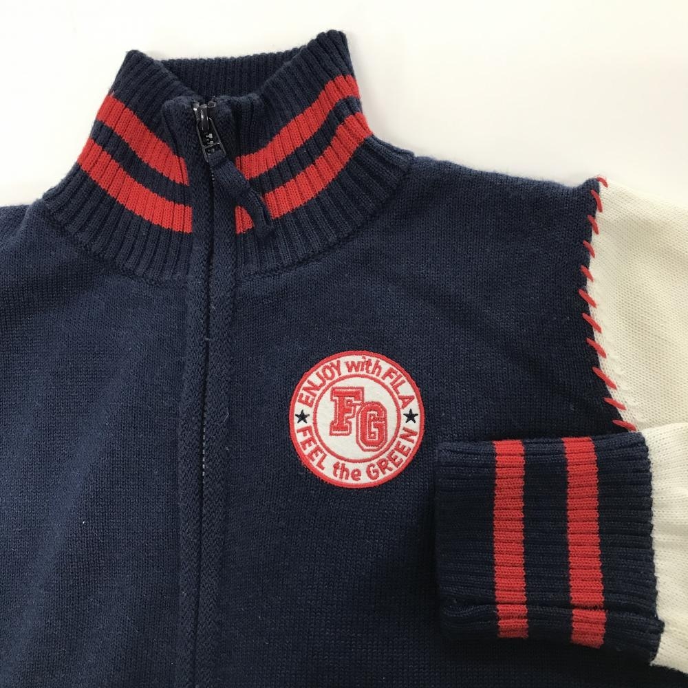 【美品】フィラゴルフ ニットジャケット ネイビー×白 ワッペン 裏地付 レディース L ゴルフウェア FILA GOLF