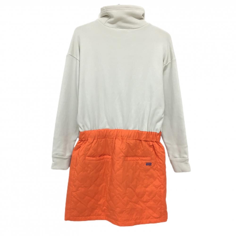 【超美品】ロサーセン ハイネックワンピース ライトグレー×オレンジ スカート中綿 上部裏起毛 レディース M ゴルフウェア Rosasen