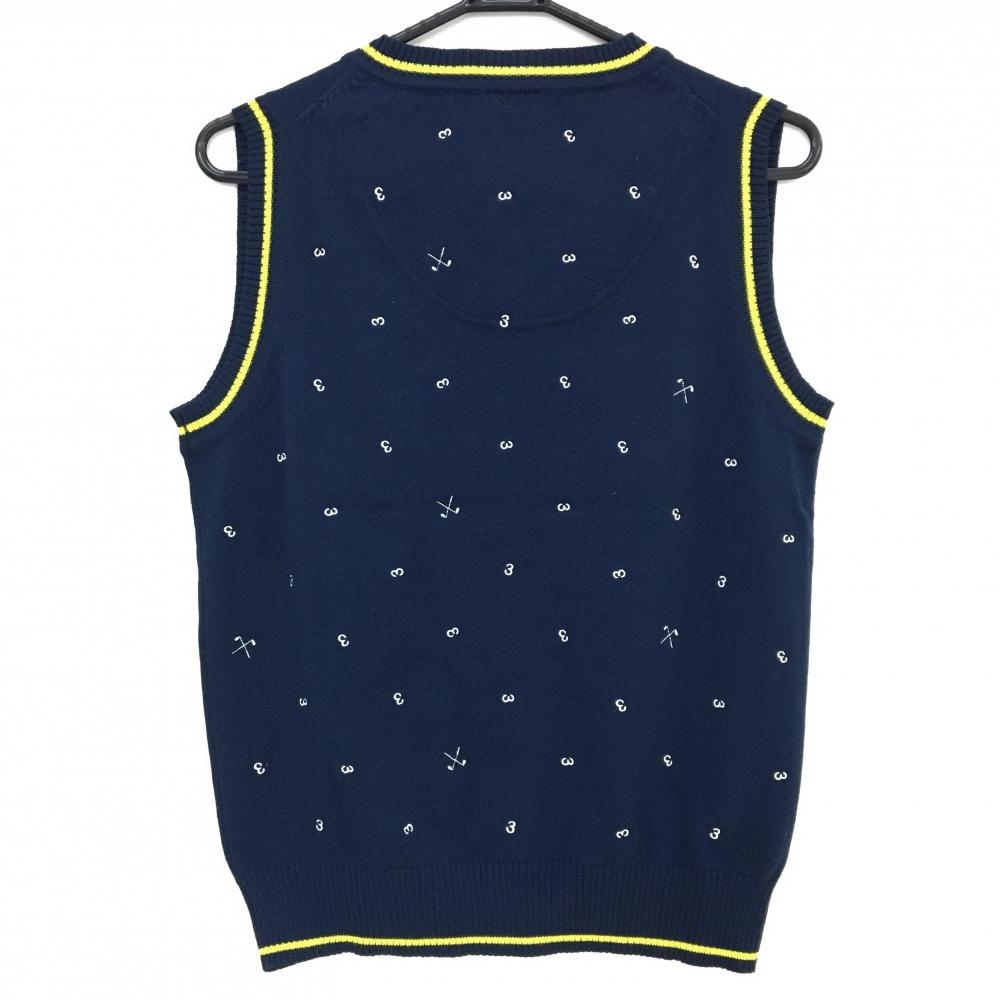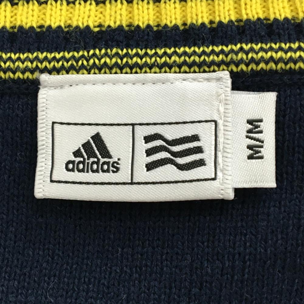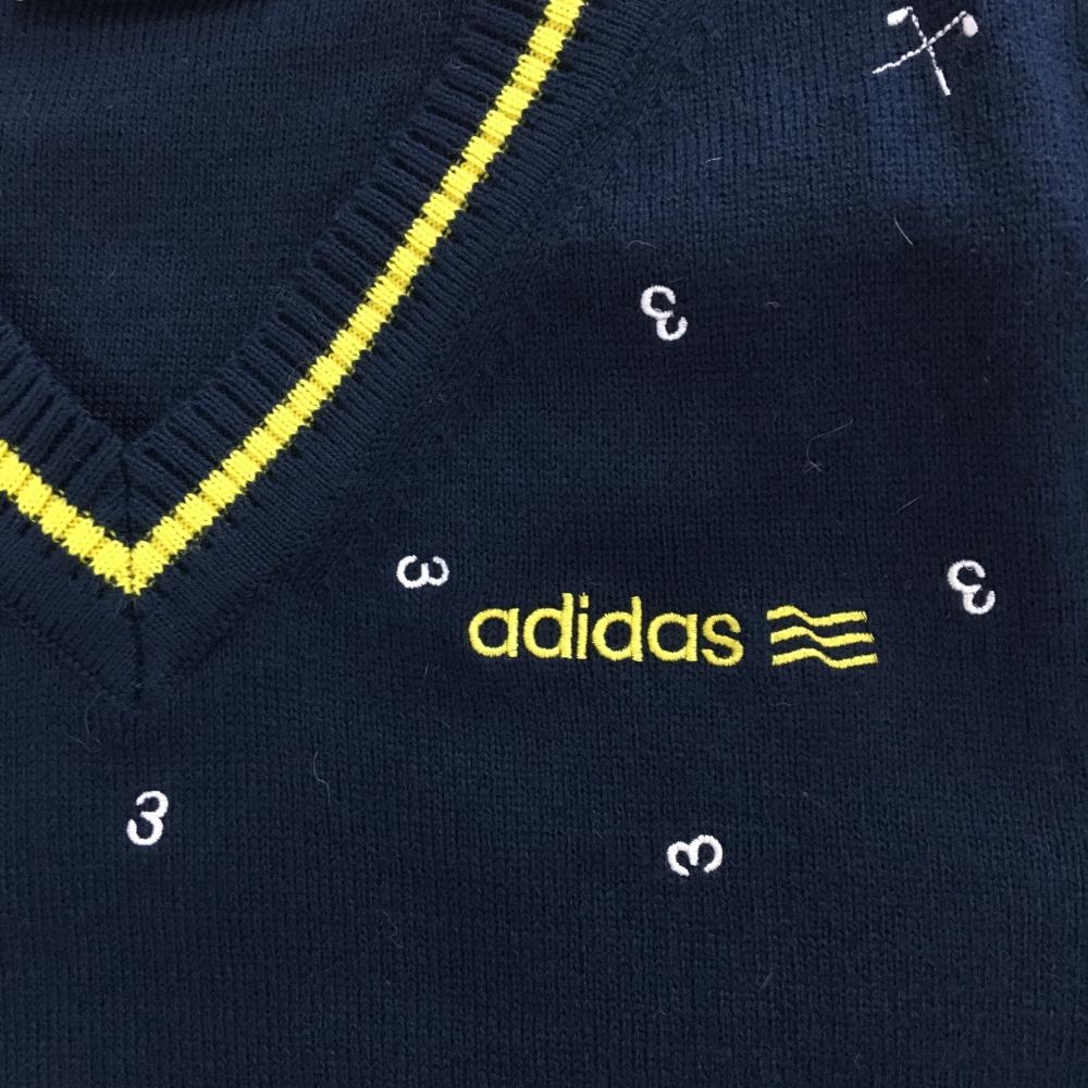 【超美品】アディダス ニットベスト ネイビー×イエロー 総柄刺しゅう Vネック レディース M/M ゴルフウェア adidas