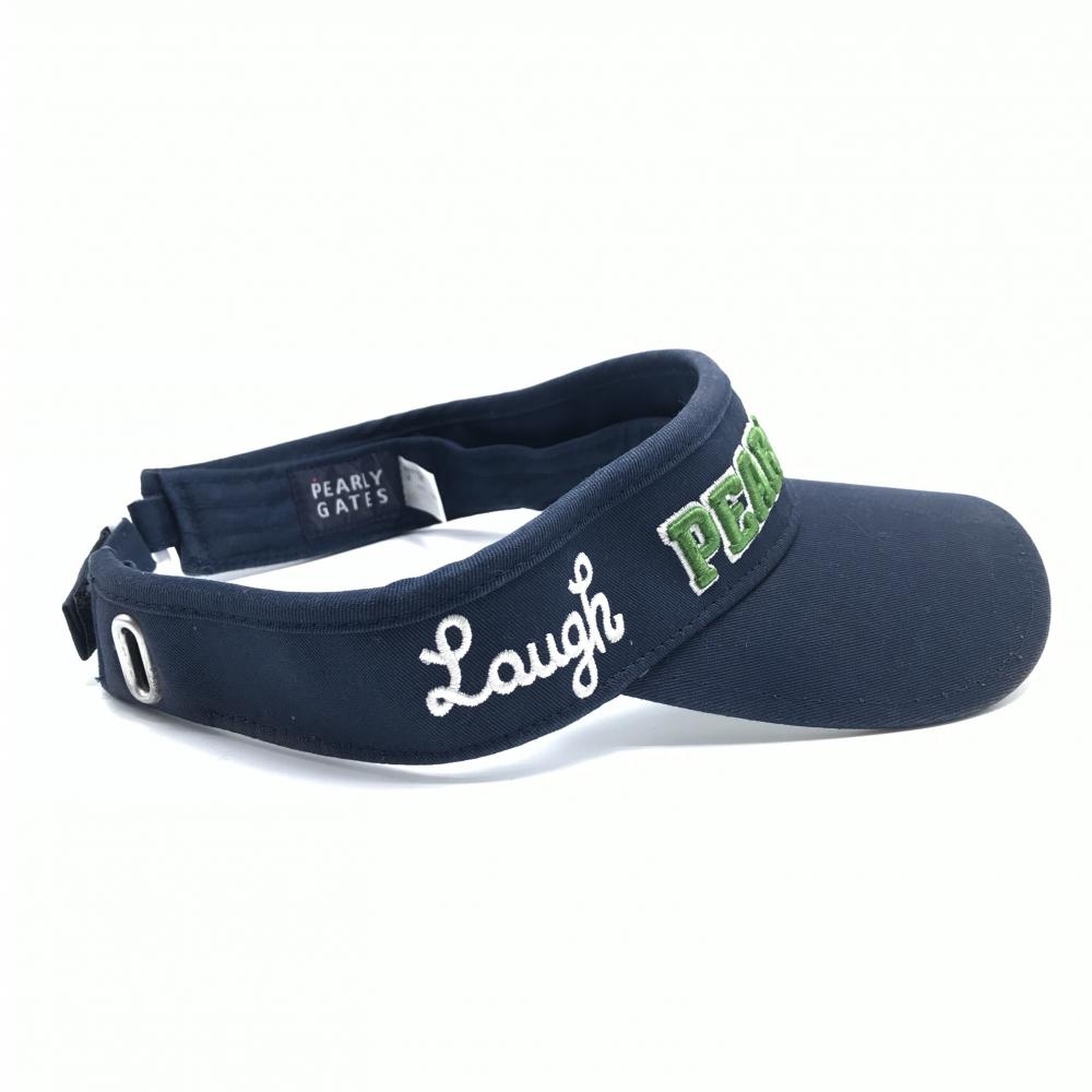 パーリーゲイツ サンバイザー ネイビー×グリーン 立体ロゴ ニコちゃん スマイル FR ゴルフウェア PEARLY GATES