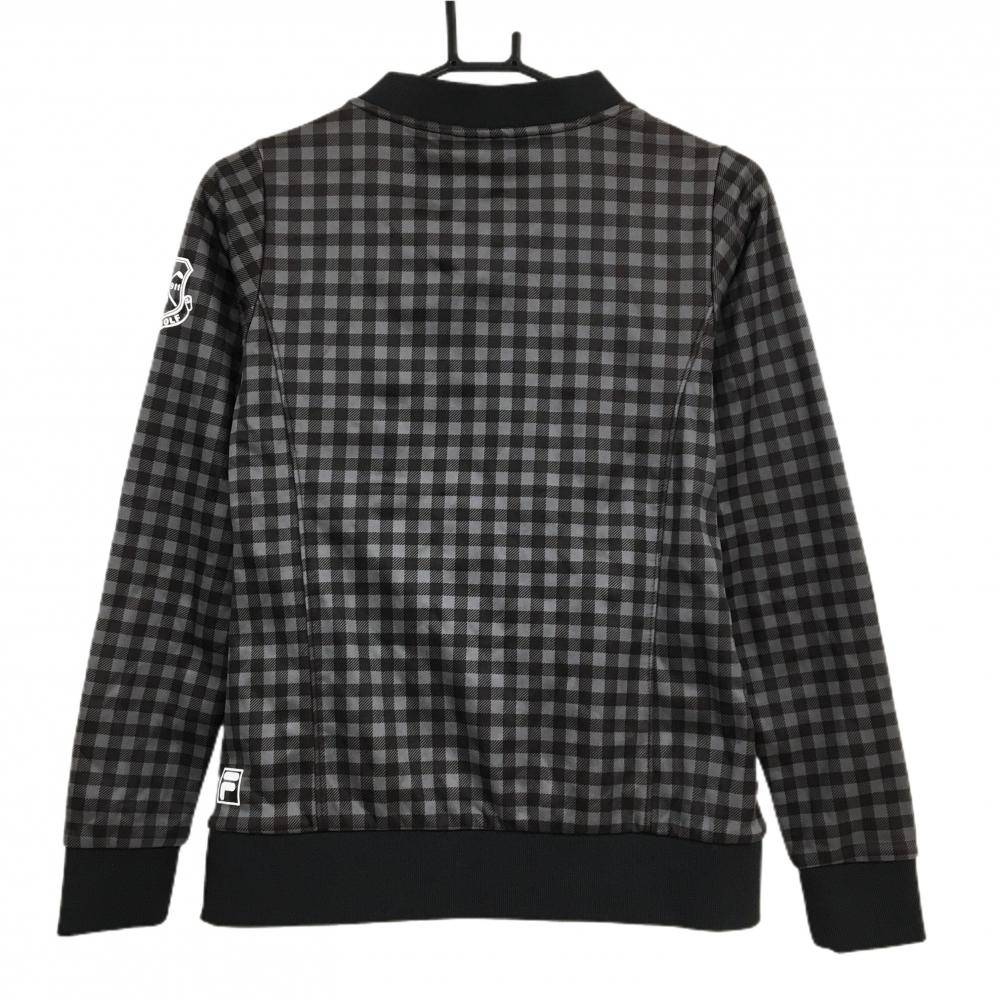 【美品】フィラゴルフ ブルゾン グレー×黒 チェック 裏起毛 スニード Vネック レディース M ゴルフウェア FILA GOLF