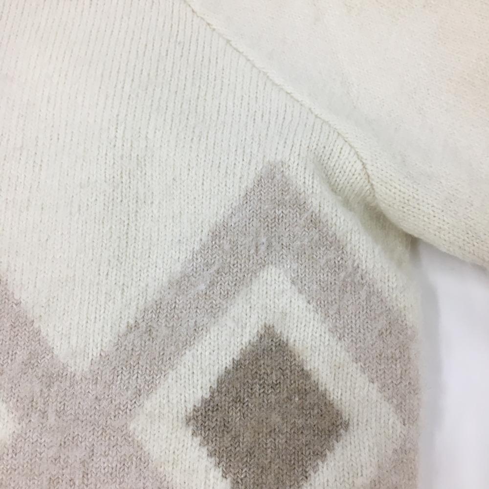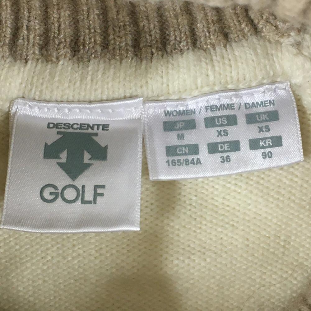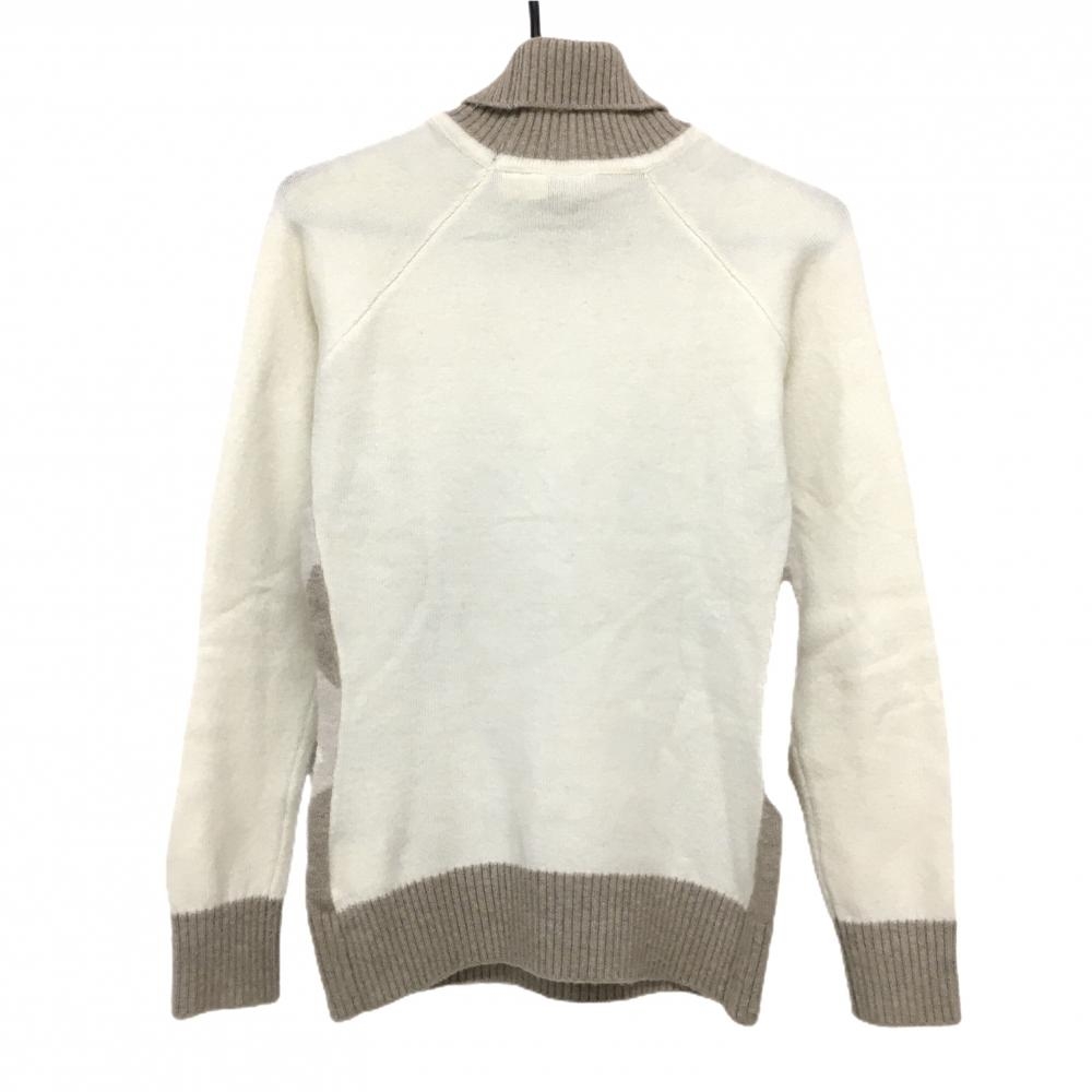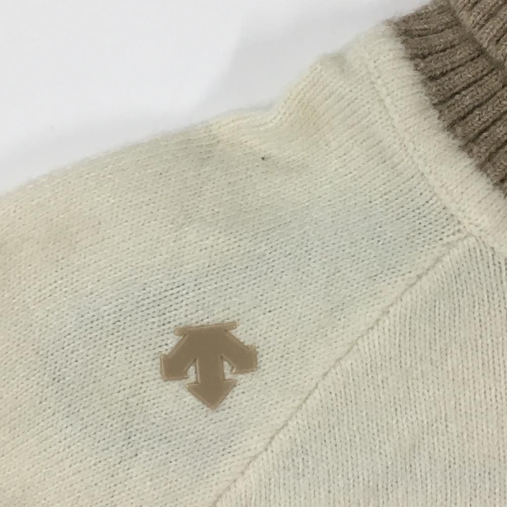 デサントゴルフ タートルネックセーター 白×ベージュ 一部ダイヤ柄 ニット 中田英寿 レディース M ゴルフウェア DESCENTE
