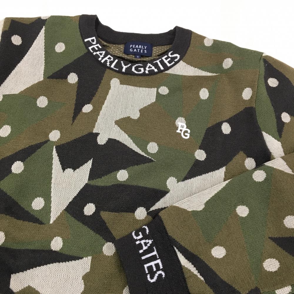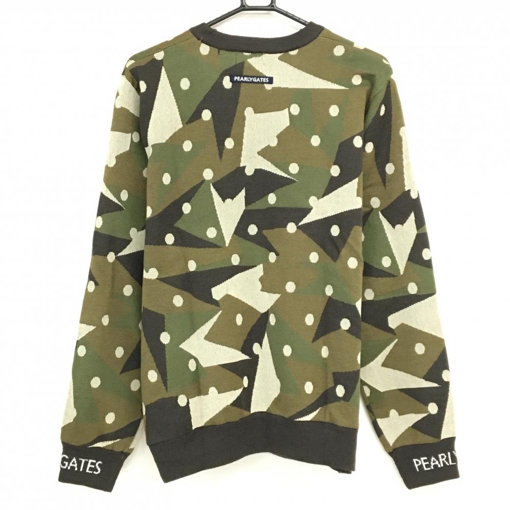 【超美品】パーリーゲイツ 裏地付セーター カーキ×ブラウン 迷彩風 カモフラ ウール混 ニット メンズ 5(L) ゴルフウェア PEARLY GATES