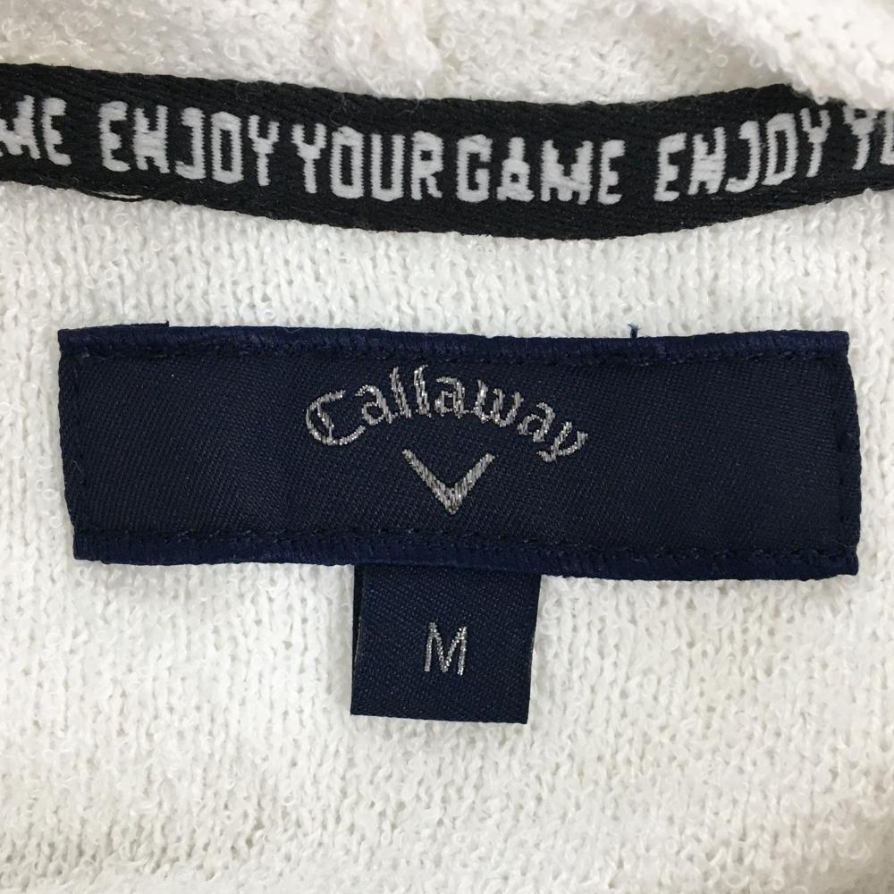 【美品】キャロウェイ ニットパーカー 白×ネイビー ロゴ刺しゅう セーター メンズ M ゴルフウェア Callaway