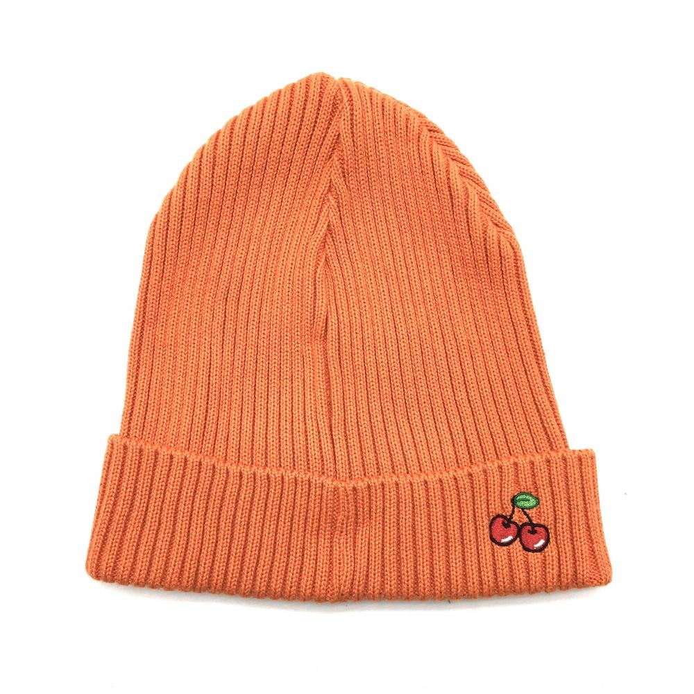 【超美品】パーリーゲイツ ニット帽 オレンジ×白 さくらんぼ FR ゴルフウェア PEARLY GATES