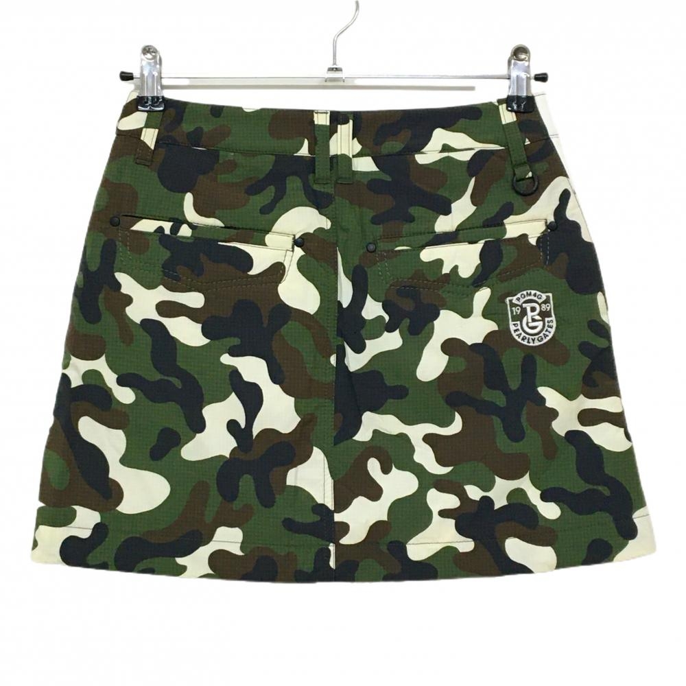 パーリーゲイツ 中綿スカート グリーン×アイボリー×黒 カモフラ 迷彩 レディース 00(XS) ゴルフウェア PEARLY GATES