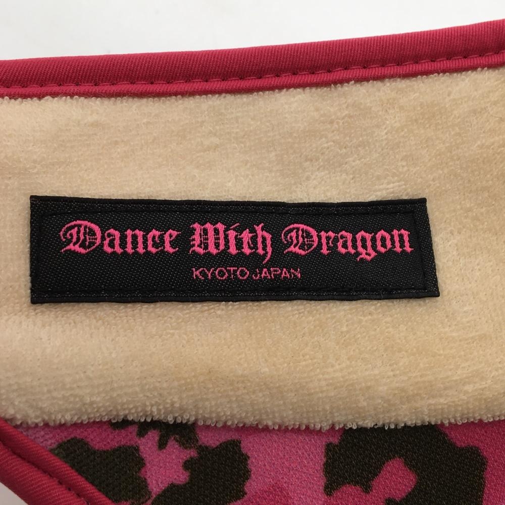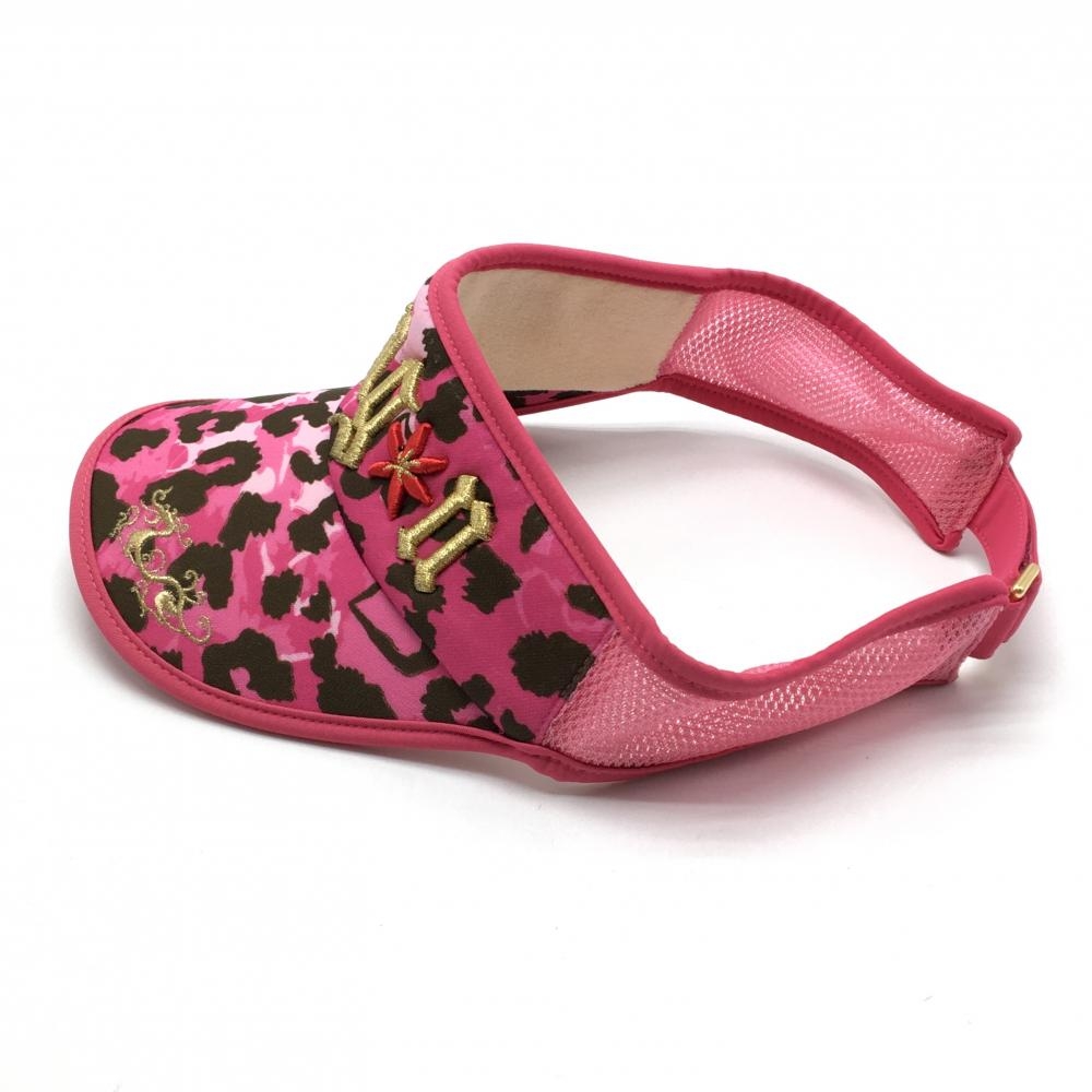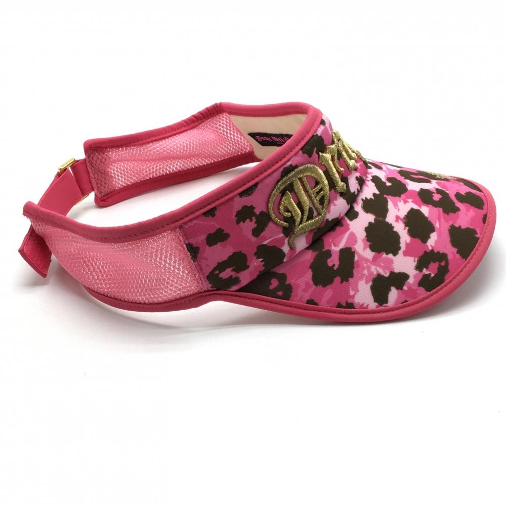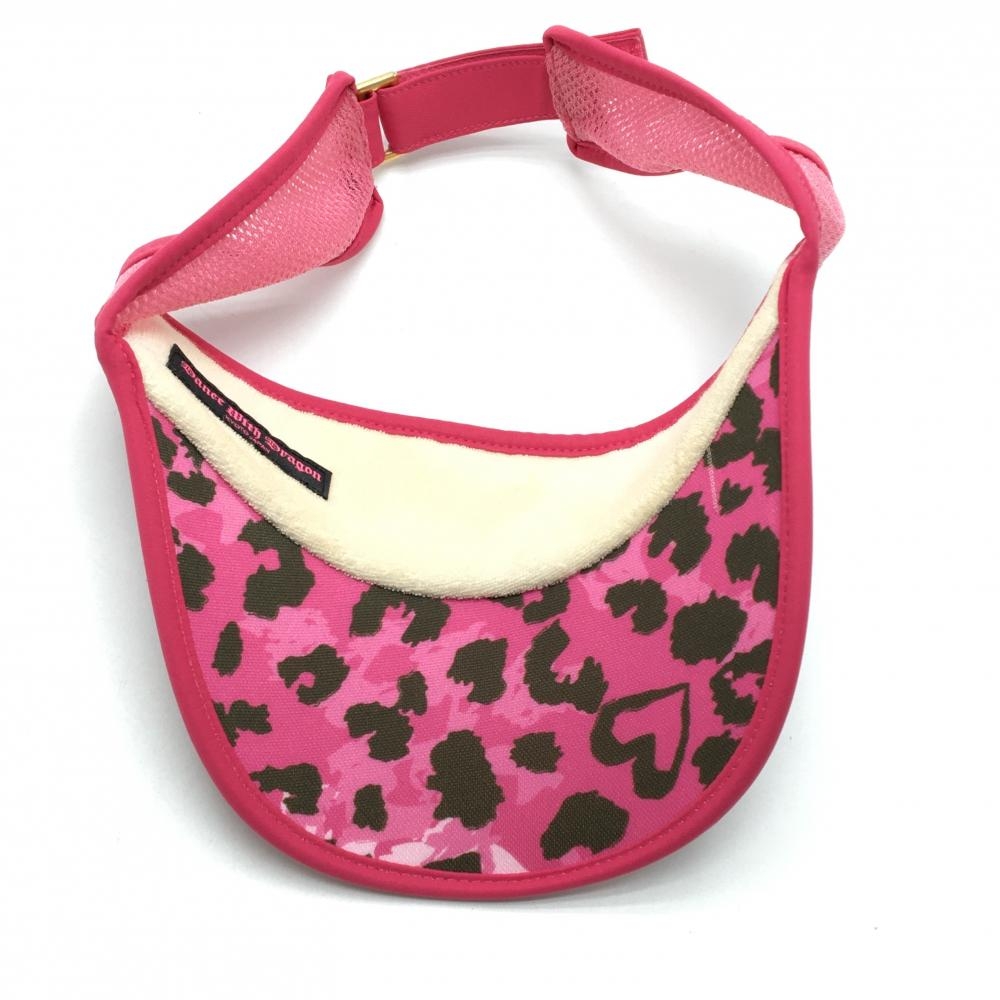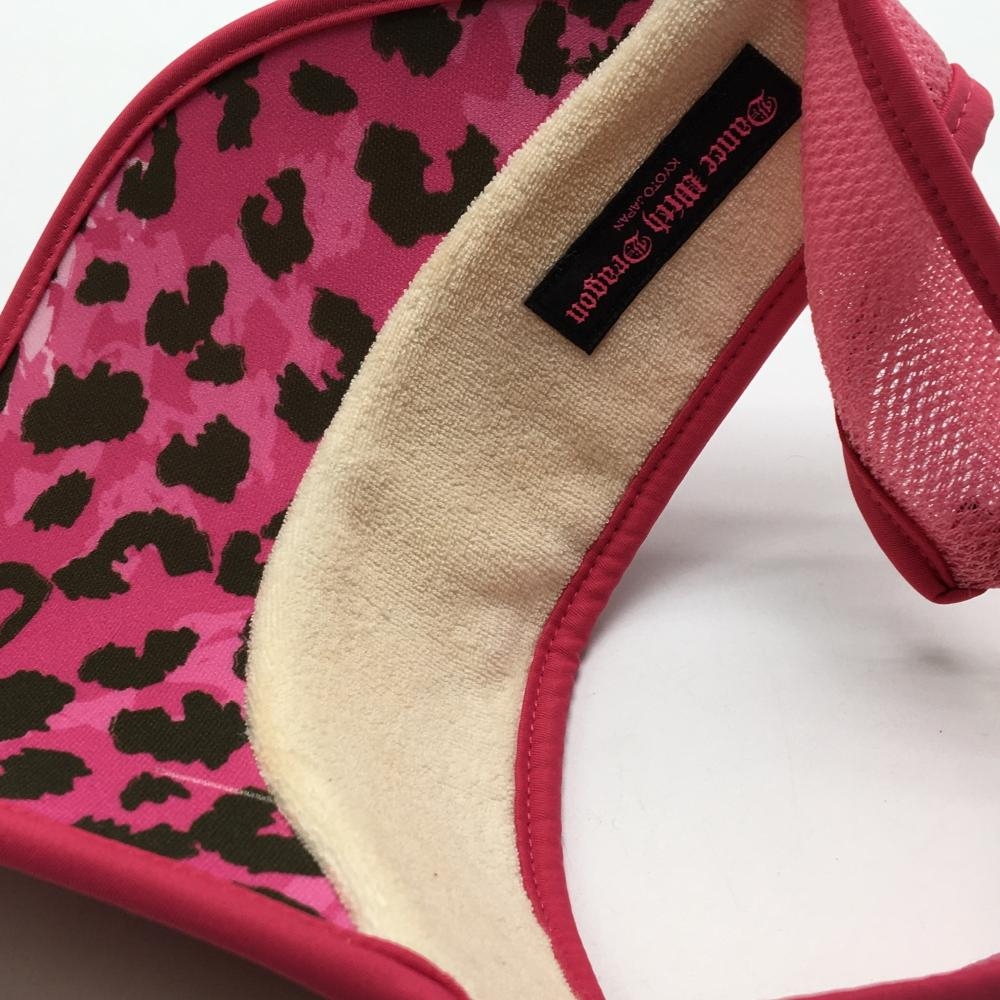 【美品】ダンスウィズドラゴン サンバイザー ピンク×ブラウン 総柄 刺しゅうゴールド ゴルフウェア Dance With Dragon