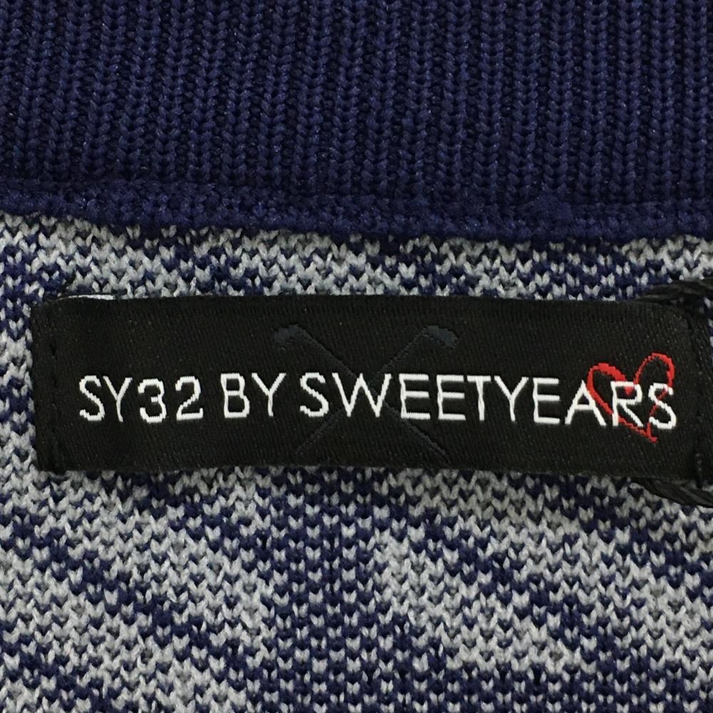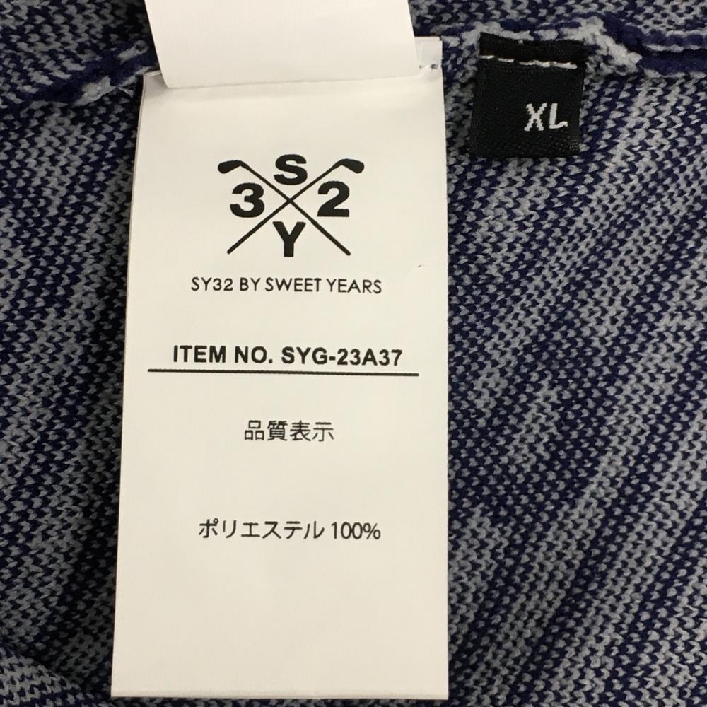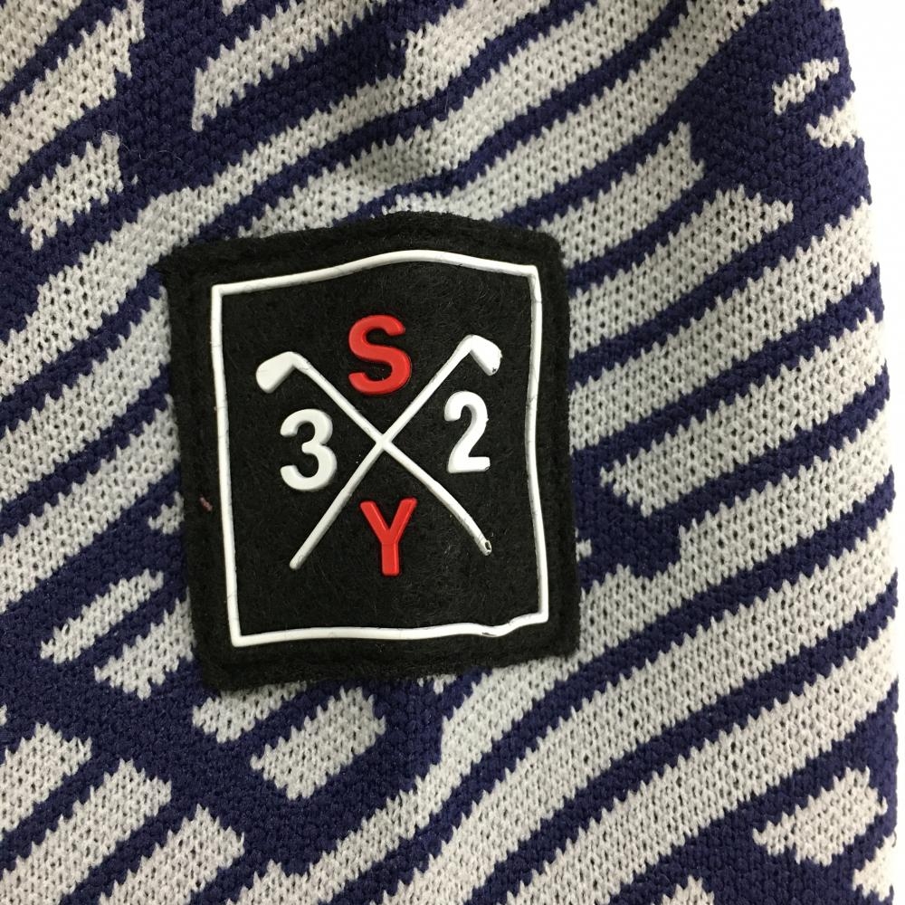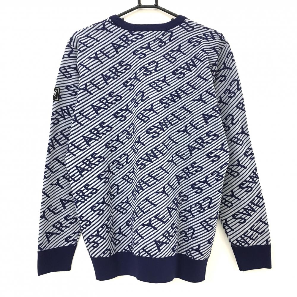 【新品】SY32 セーター ネイビー×ライトグレー ロゴ総柄 斜めボーダー ニット メンズ XL ゴルフウェア 2023年モデル SY32 BY SWEET YEARS