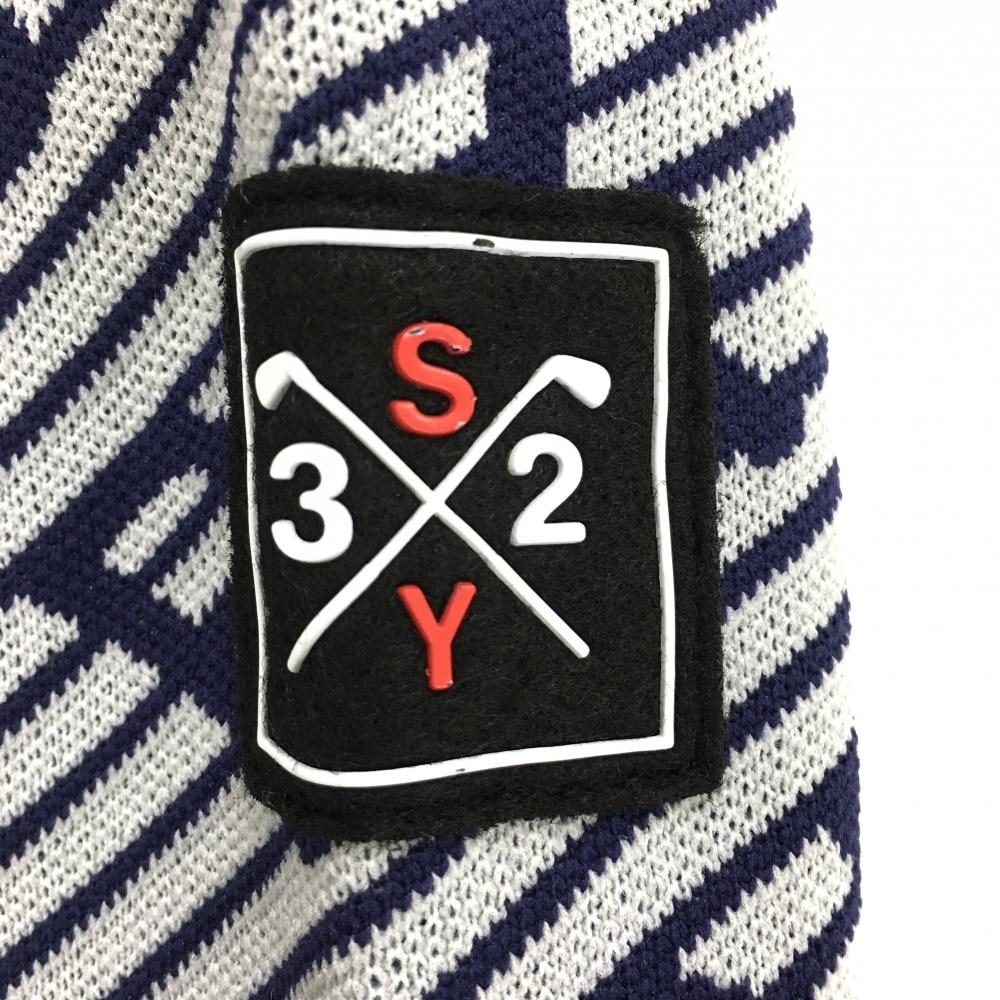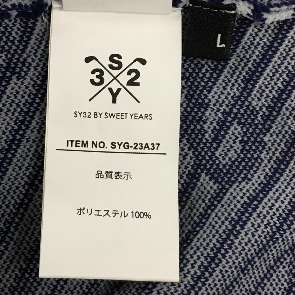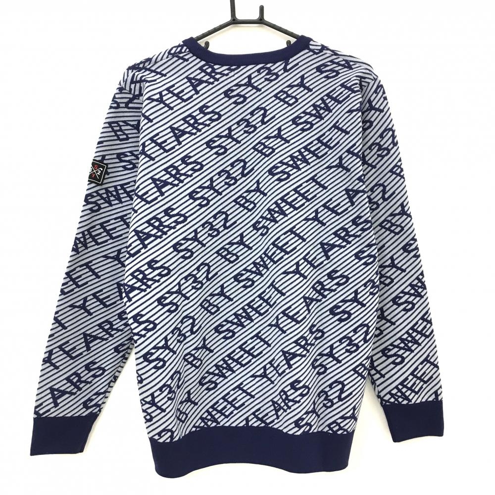 【新品】SY32 セーター ネイビー×ライトグレー ロゴ総柄 斜めボーダー ニット メンズ L ゴルフウェア 2023年モデル SY32 BY SWEET YEARS