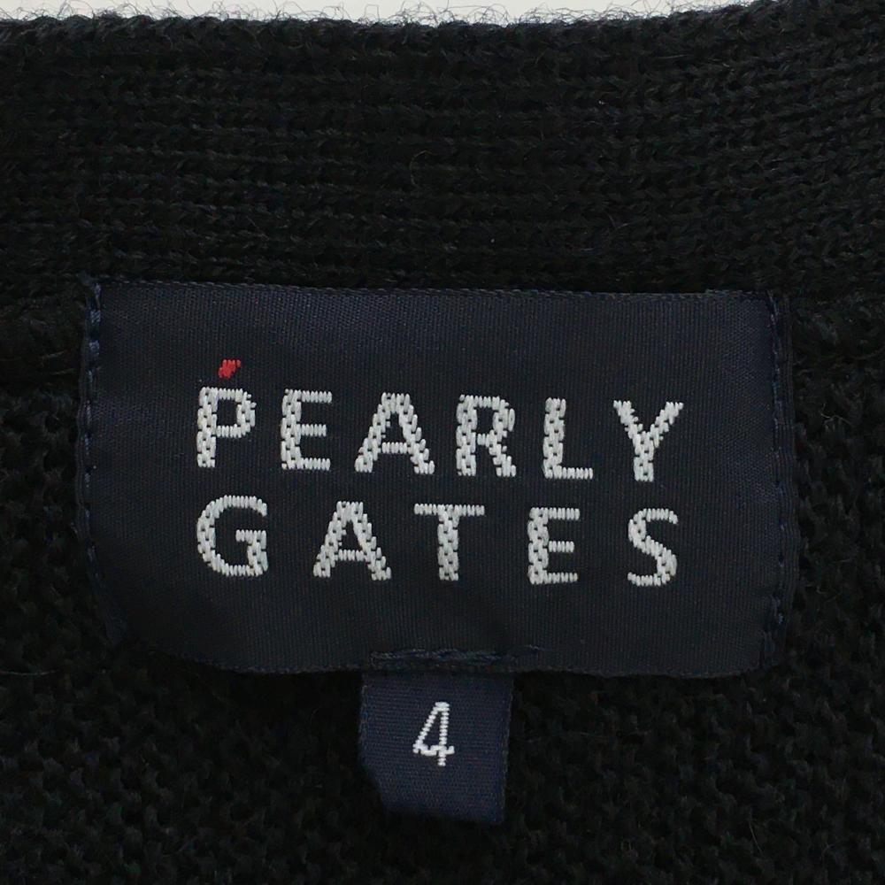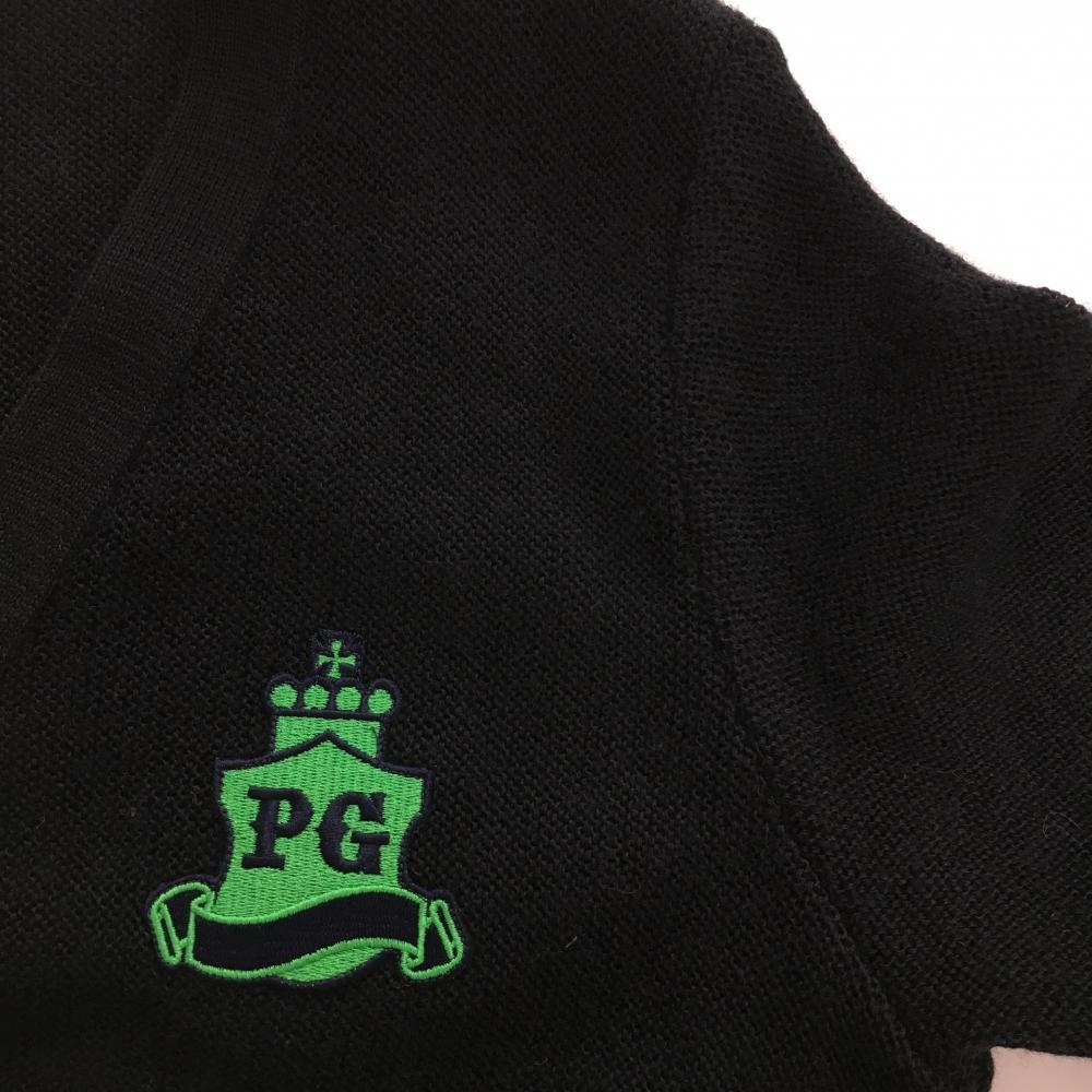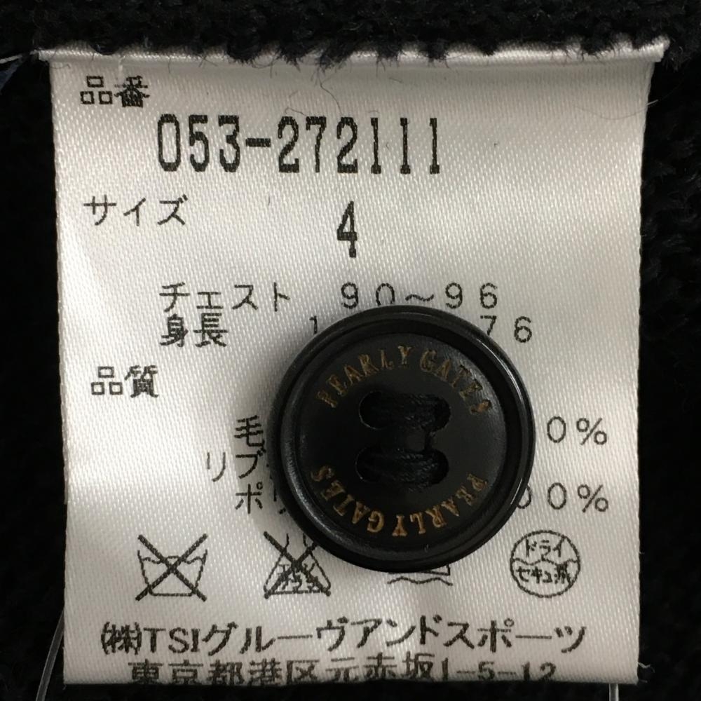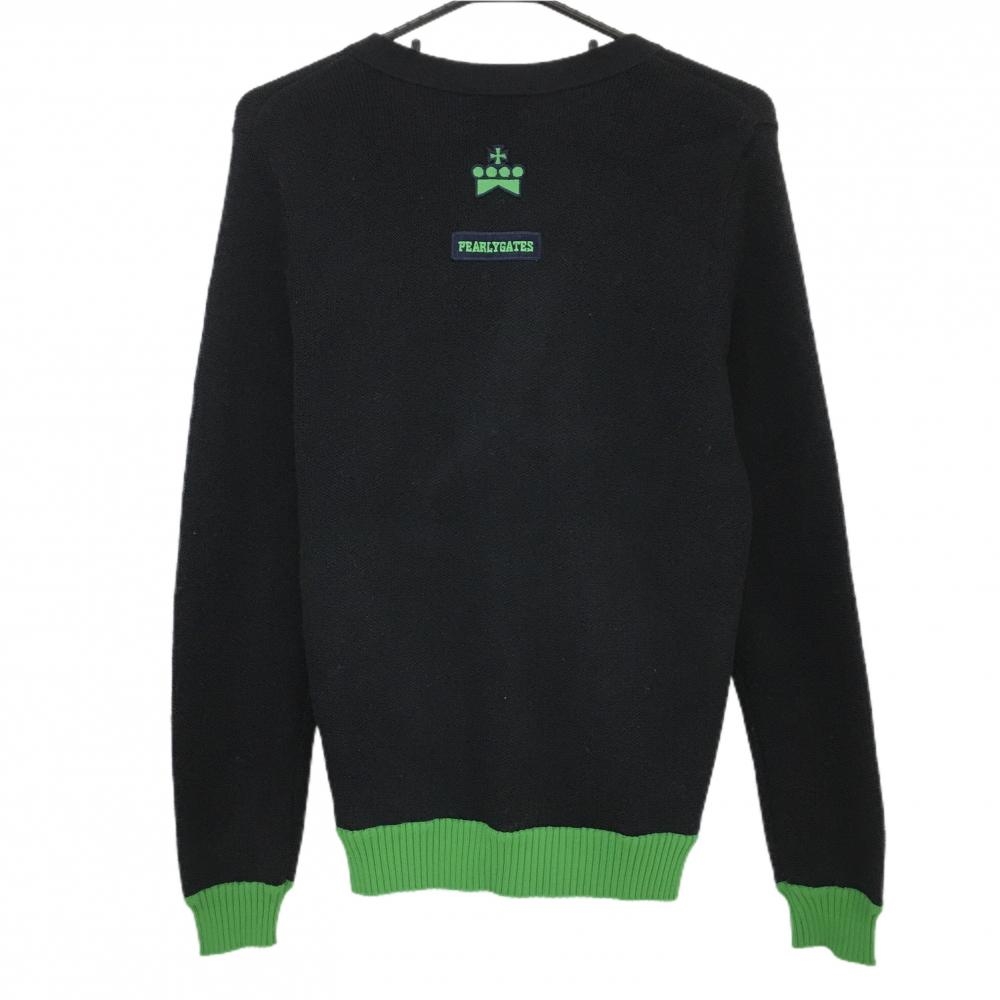 【超美品】パーリーゲイツ ニットカーディガン 黒×グリーン ウール100% メンズ 4 ゴルフウェア PEARLY GATES