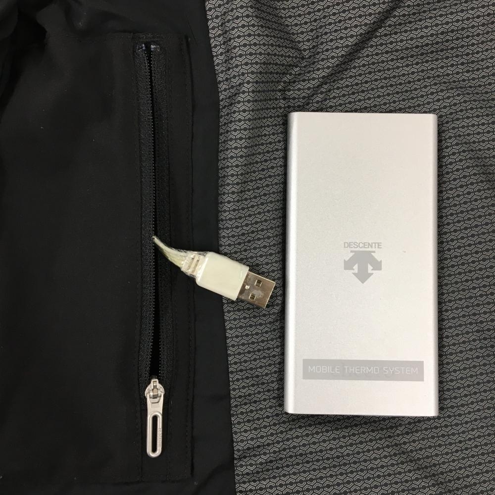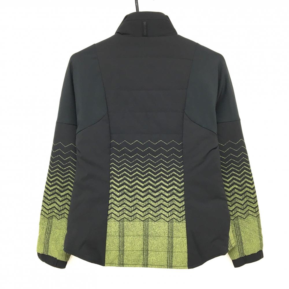 【美品】デサントゴルフ モバイルサーモ中綿ジャケット 黒×ライトグリーン 一部ギザギザ柄 レディース M ゴルフウェア DESCENTE