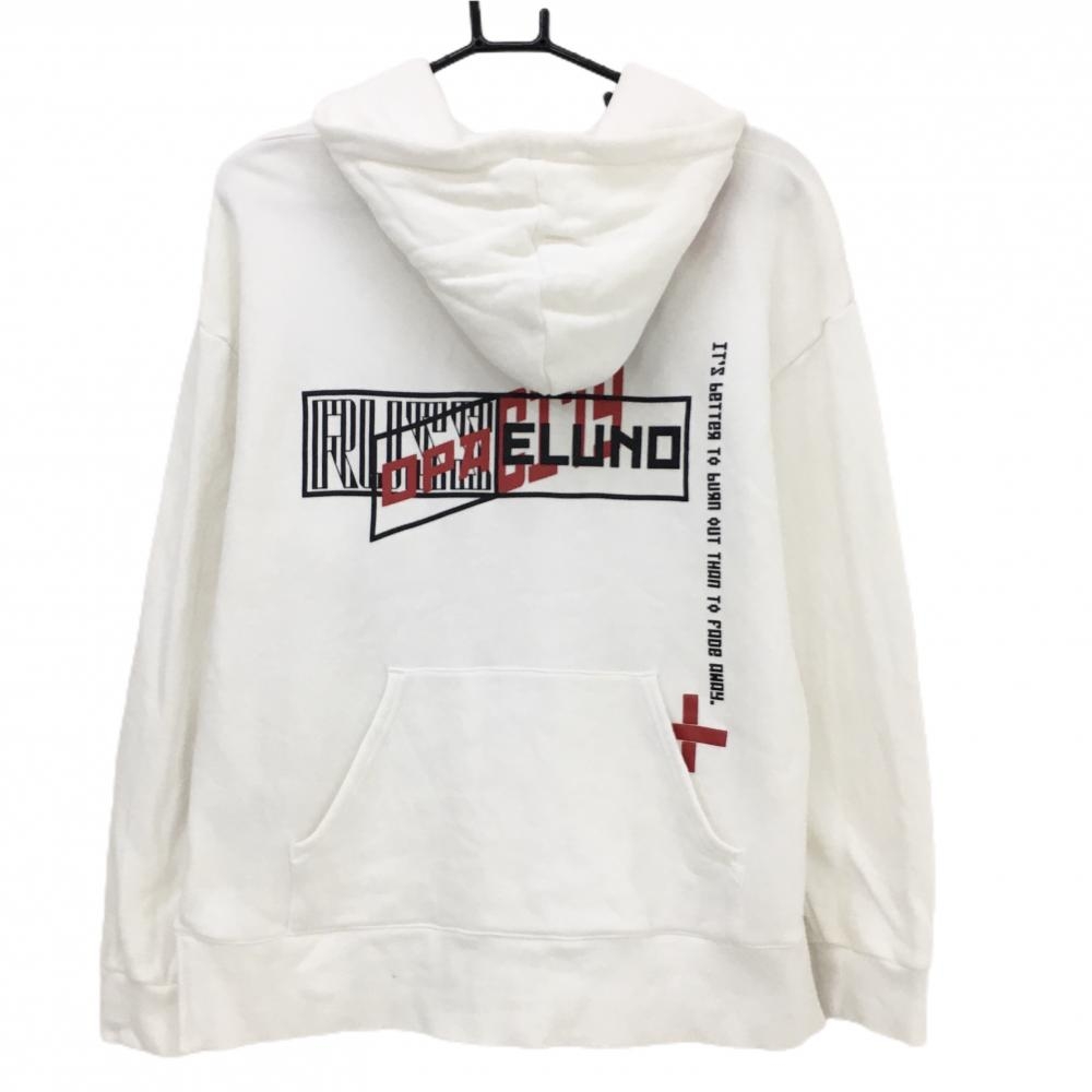 【超美品】ラッセルノ フード付トレーナー 白×黒 ルチャ 裏起毛 レディース 2(L) ゴルフウェア RUSSELUNO