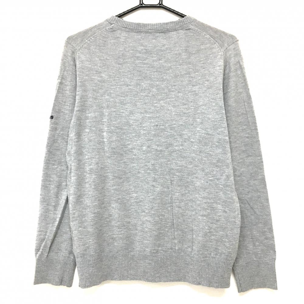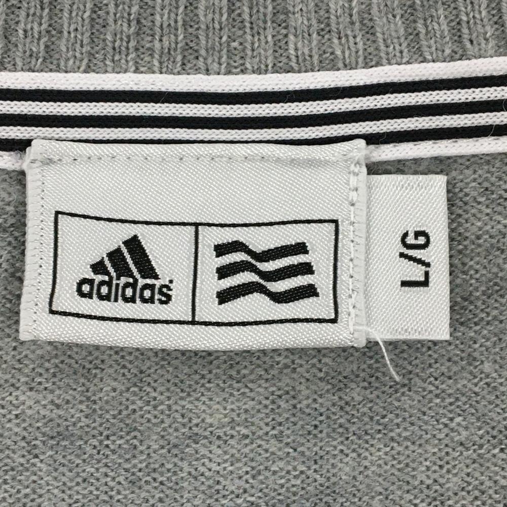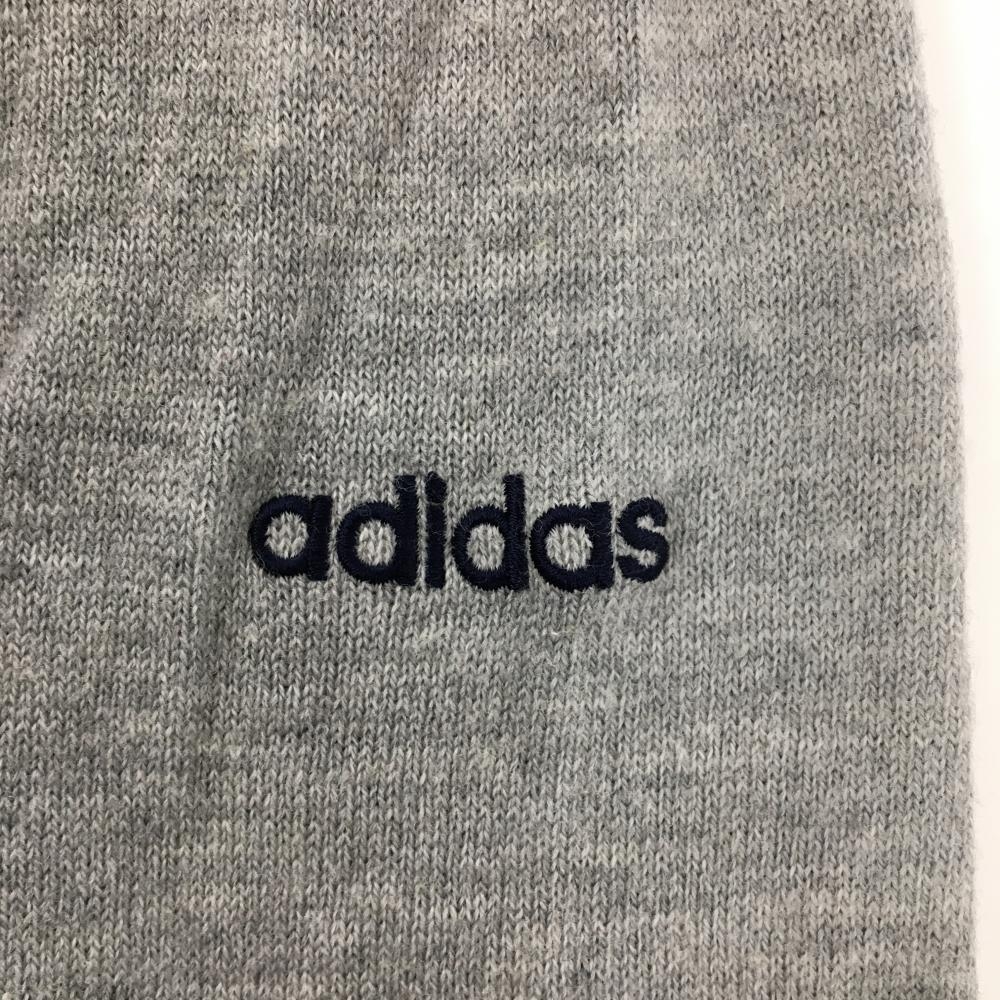 【美品】アディダス セーター グレー×ネイビー ウール混 フロントロゴ レディース L/G ゴルフウェア adidas