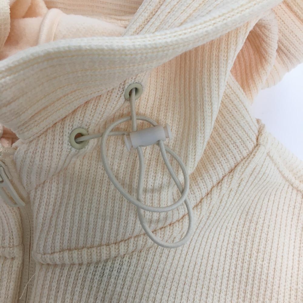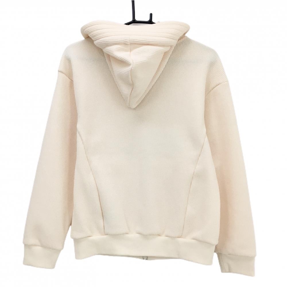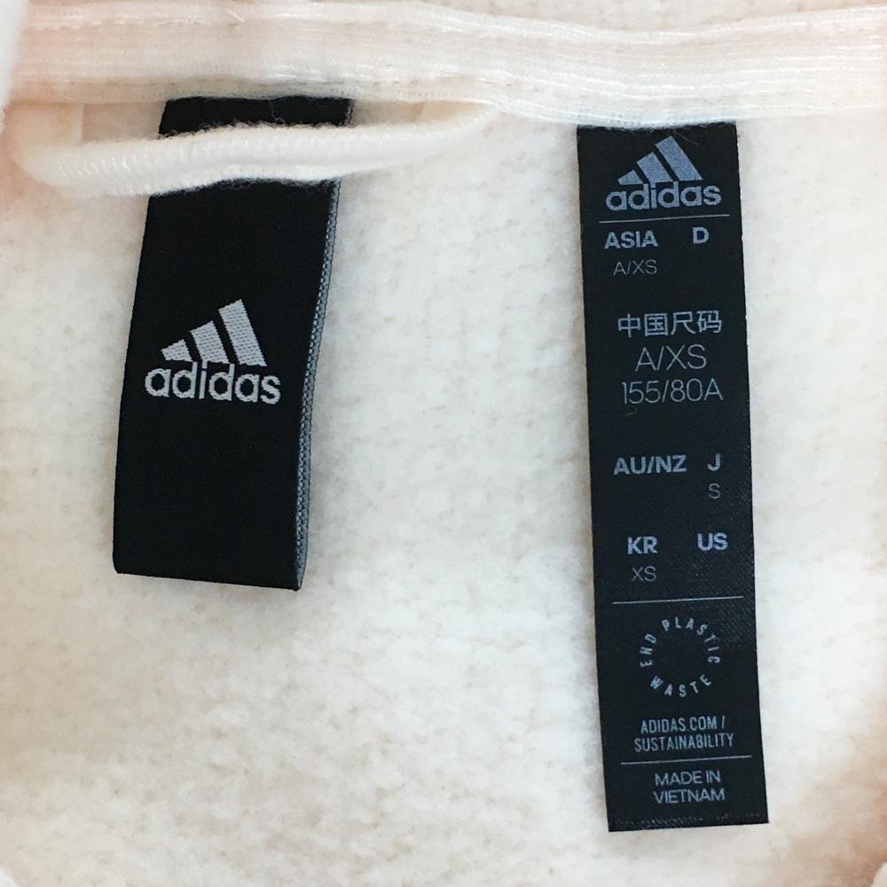 【超美品】アディダス ニットジップパーカー アイボリー フードドローコード ロゴ刺しゅう 裏起毛 レディース S ゴルフウェア adidas