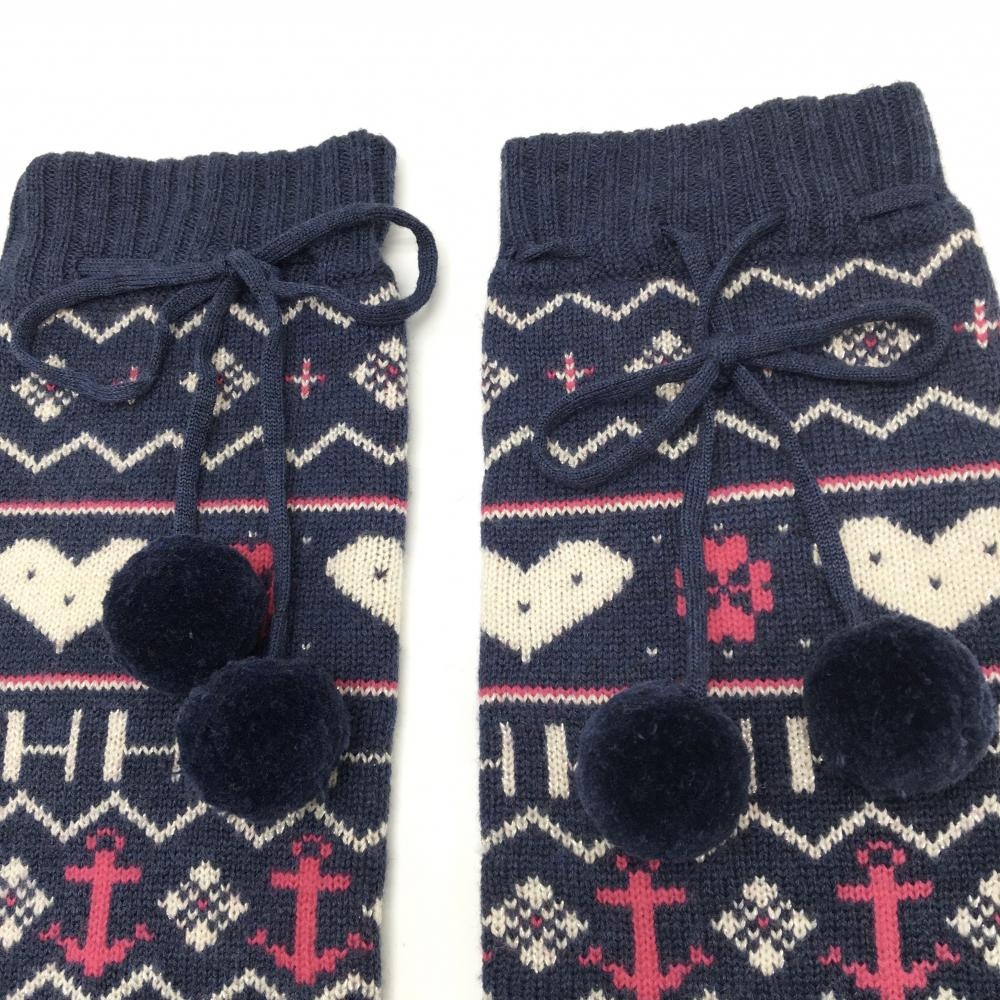 ビバハート ニットレッグウォーマー ネイビー×ピンク ボンボン付き レディース ゴルフウェア VIVA HEART