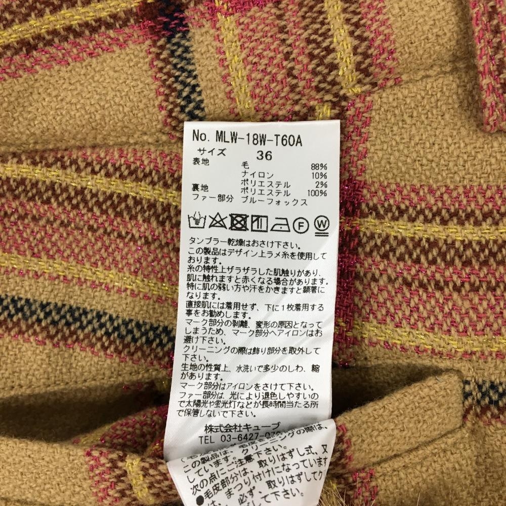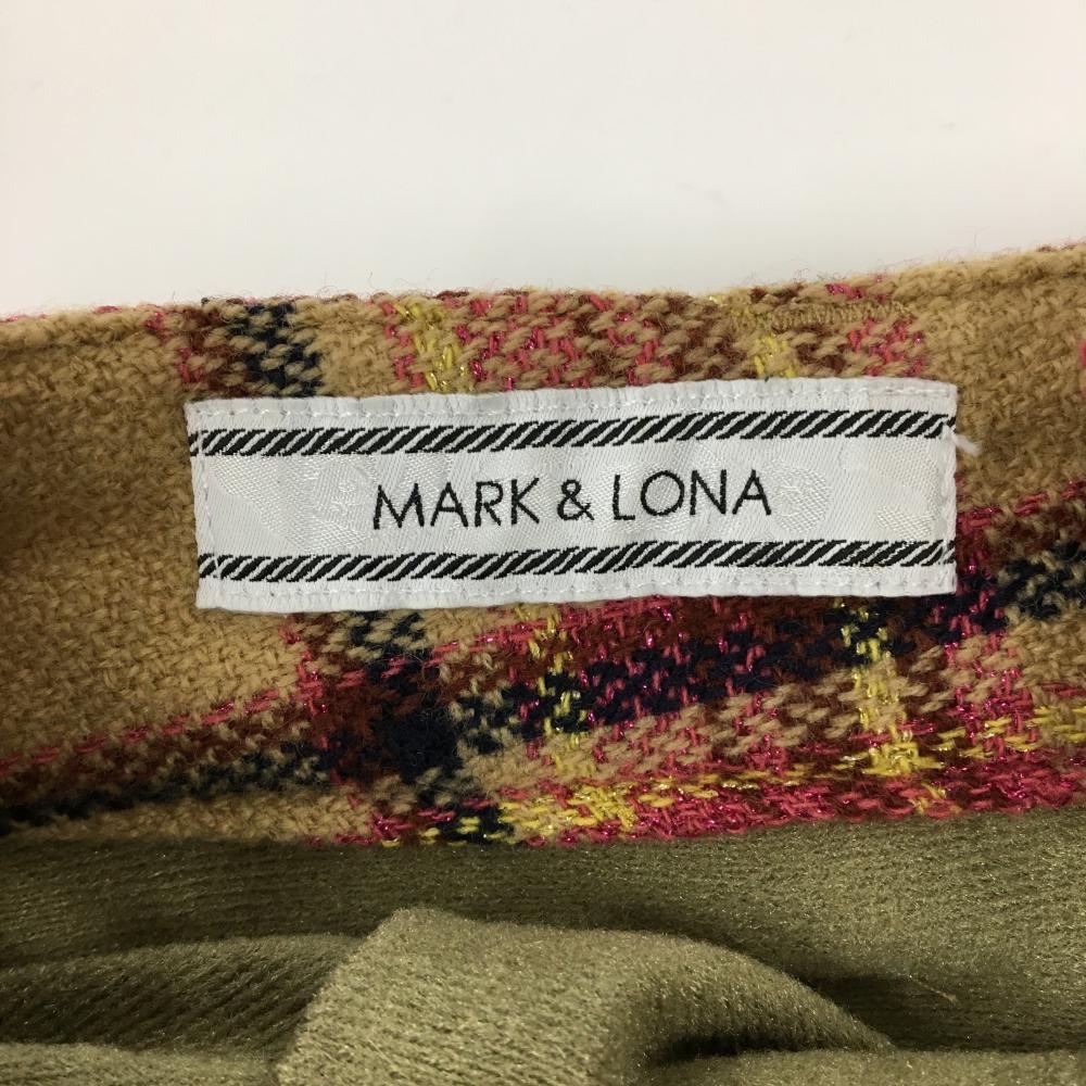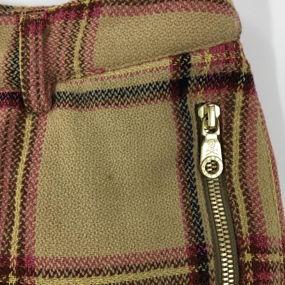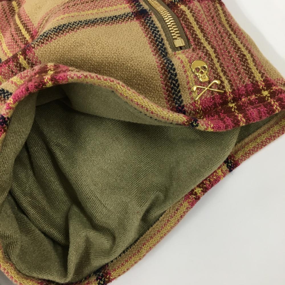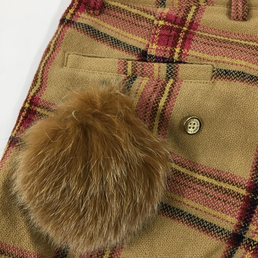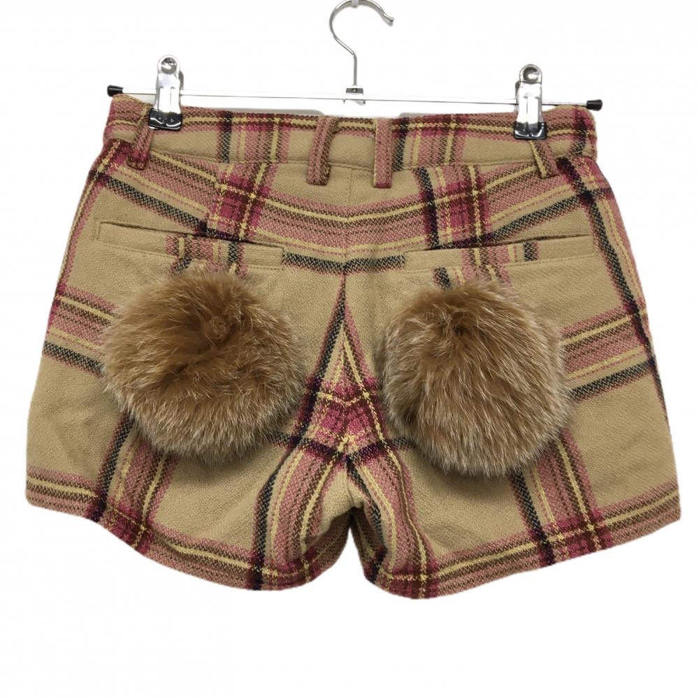 【美品】マークアンドロナ ショートパンツ ベージュ×ピンク チェック ボンボン付き 裏起毛 レディース 36(S) ゴルフウェア MARK&LONA