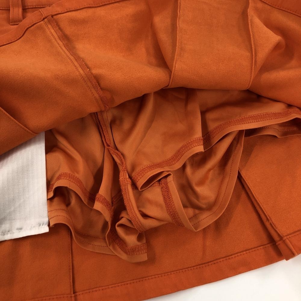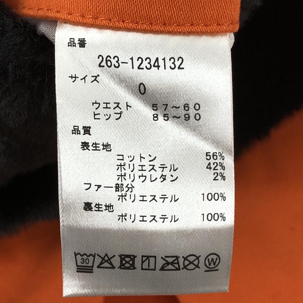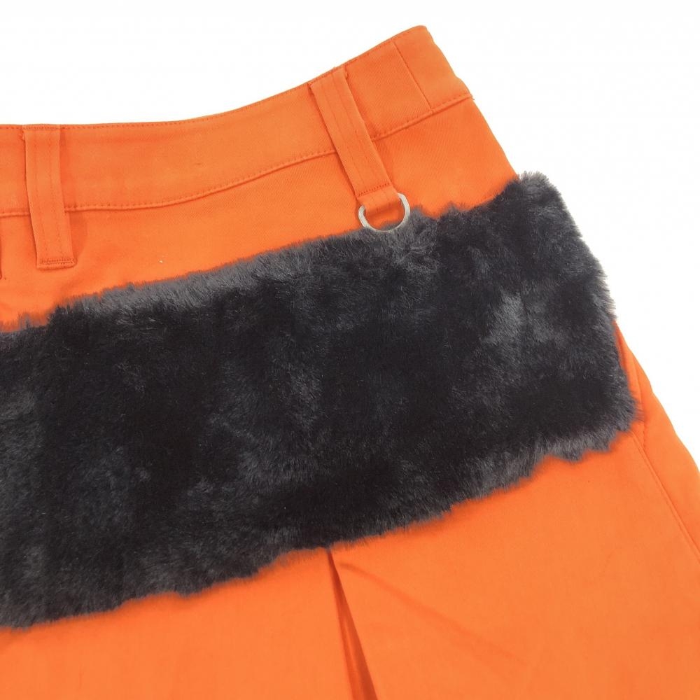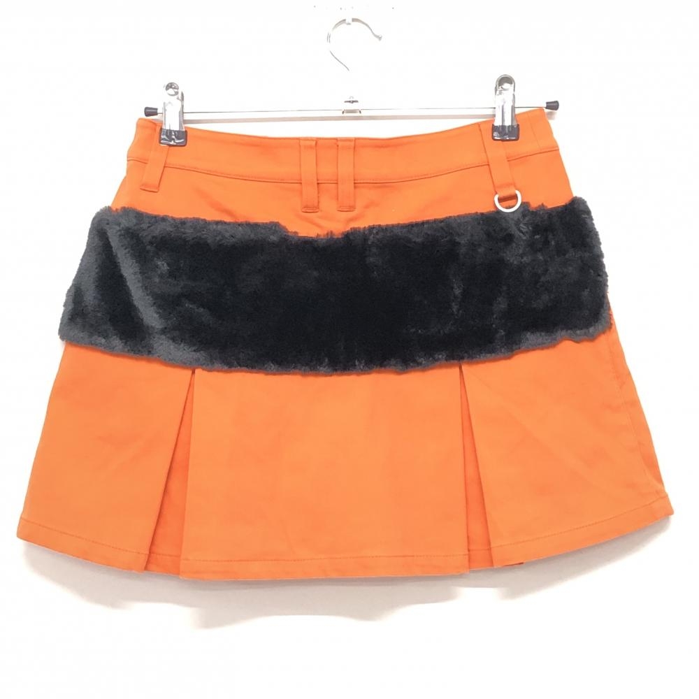 【美品】ジャックバニー ボックスプリーツスカート オレンジ×黒 一部ファー レディース 0(S) ゴルフウェア Jack Bunny