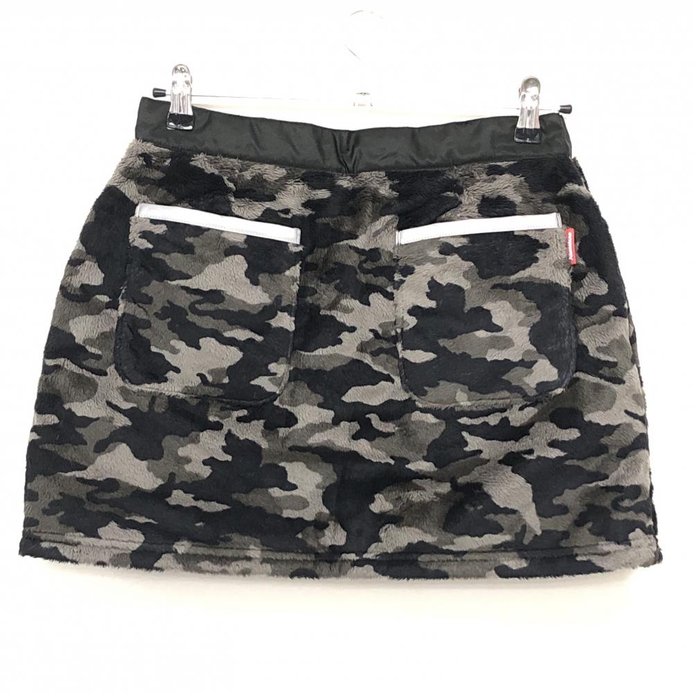 【新品】ラッセルノ リバーシブルボアスカート 黒×グレー カモフラ柄 迷彩 片面黒無地 レディース 2(L) ゴルフウェア RUSSELUNO